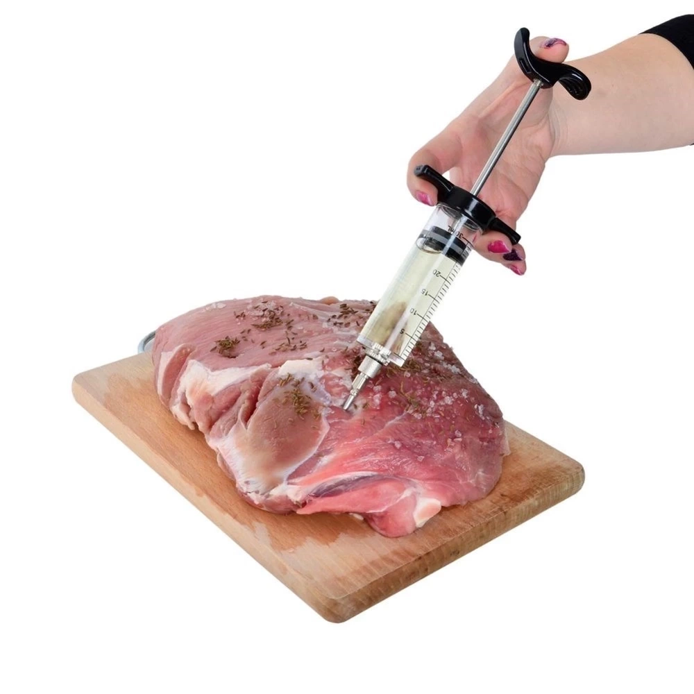 - PRZYDATNA - Praktyczna strzykawka do marynowania mięsa o pojemności 30 ml. Idealnie sprawdzi się do marynowania większych kawałków mięsa. Strzykawka ma długość 14 cm i średnicę 2,5 cm.