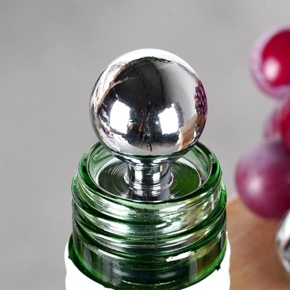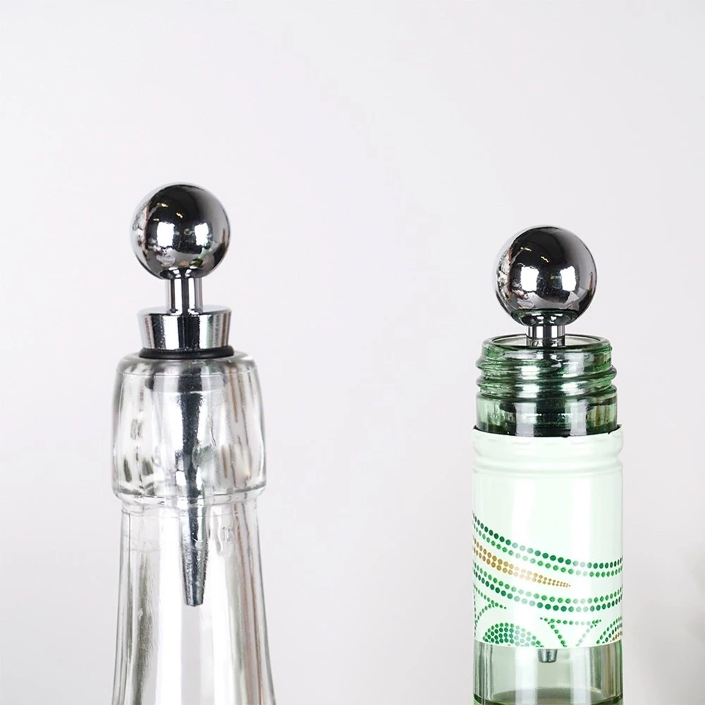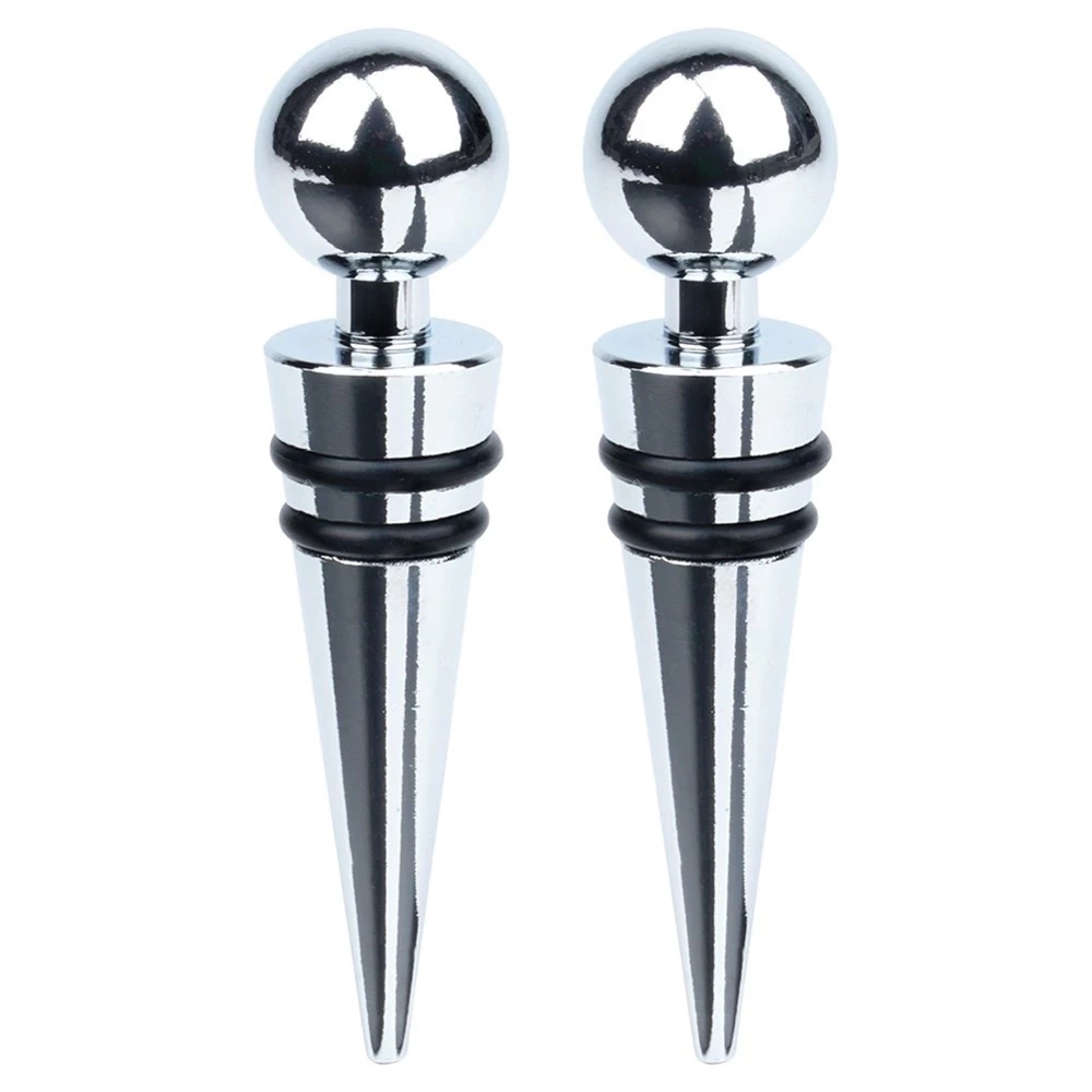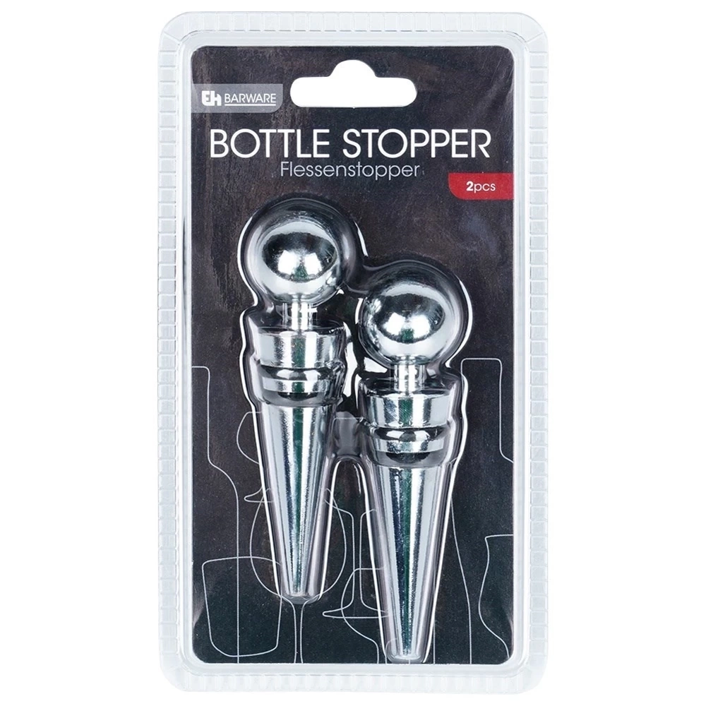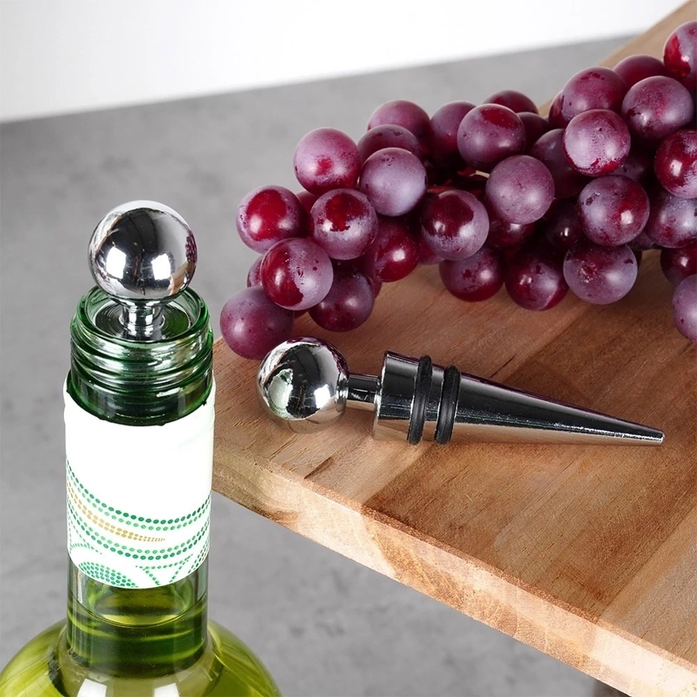 Komplet dwóch zatyczek do wina o długości 9 cm. Idealnie zabezpieczą wino, szampana lub inne trunki przed wylaniem i wygazowaniem. Dzięki nim wino zachowa dłużej swój smak i aromat. Zatyczki zamontujemy w łatwy sposób na butelce. Dzięki uchwytowi w kształcie kuli łatwo można je nałożyć i ściągnąć, co pozwala szybko cieszyć się napojem bez obaw o wylewanie. Zestaw świetnie sprawdzi się jako pomysł na prezent. Niezbędne w każdym domu miłośnika win. Wyprodukowano zgodnie z europejskimi standardami.