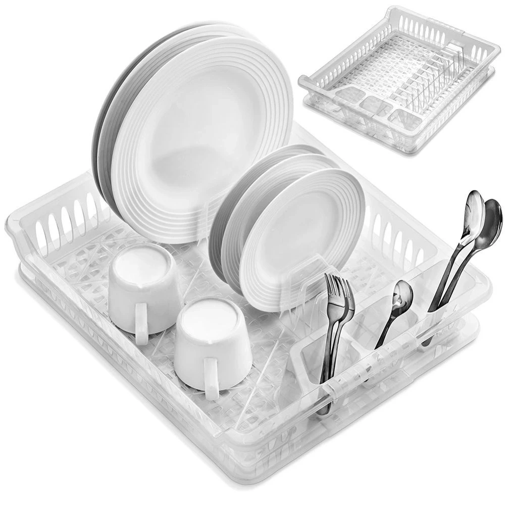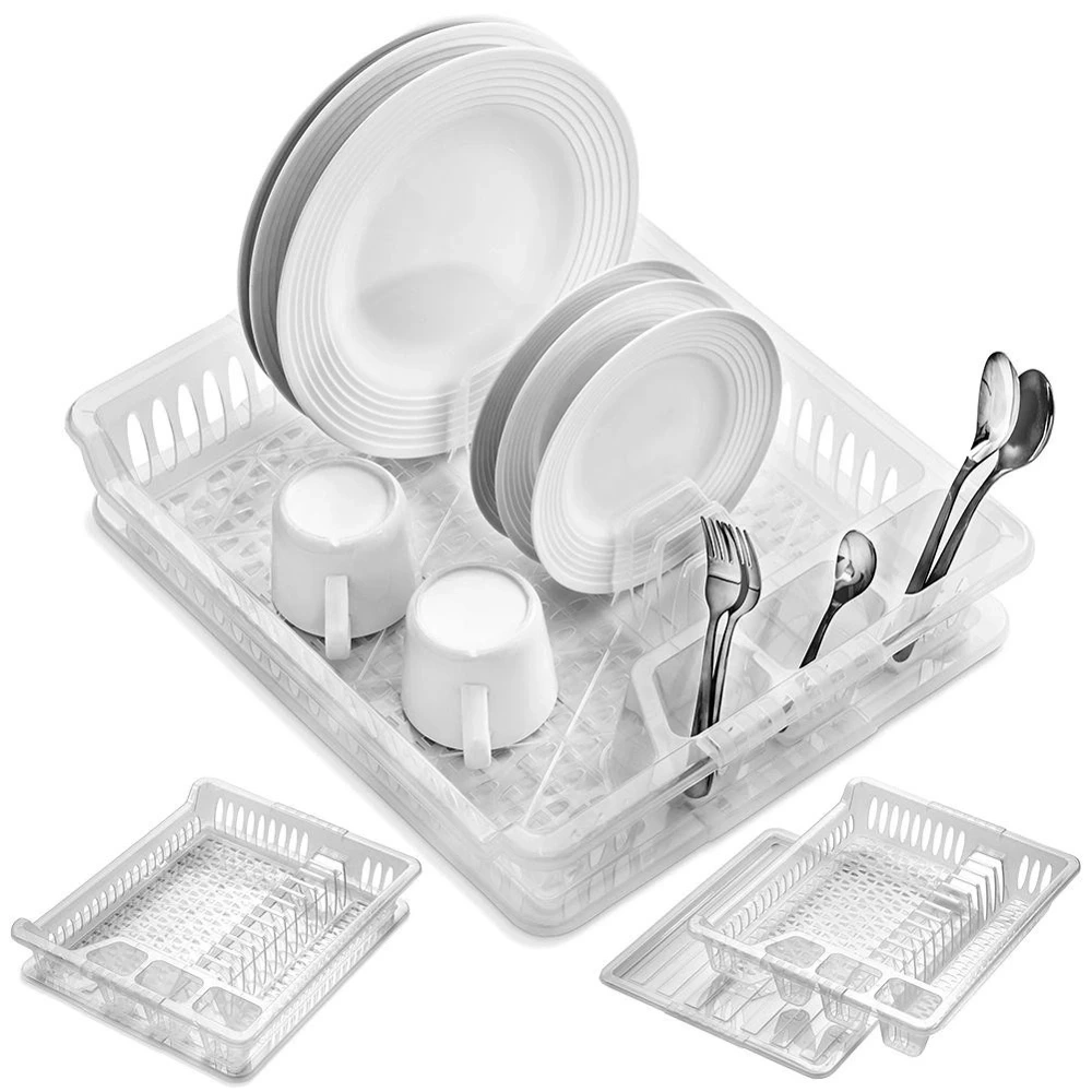 - Transparentny ociekacz z tacą na naczynia. Podzielony na sekcje - na sztućce, talerze i inne naczynia. Wyjmowana taca zapewni łatwe czyszczenie.