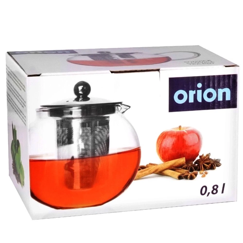 Klasyczny dzbanek w nowoczesnym wydaniu. Dzbanek pozwoli na proste przygotowanie ulubionej herbaty bez fusów. Wykonany ze szkła odpornego na wysoką temperaturę. Będzie doskonałym pomysłem na prezent dla miłośnika parzonej herbaty. Dzbanek ma 800 ml pojemności, średnicę 12 cm oraz wysokość 13 cm. Oryginalny produkt czeskiej marki Orion. Wyprodukowano zgodnie z europejskimi standardami.