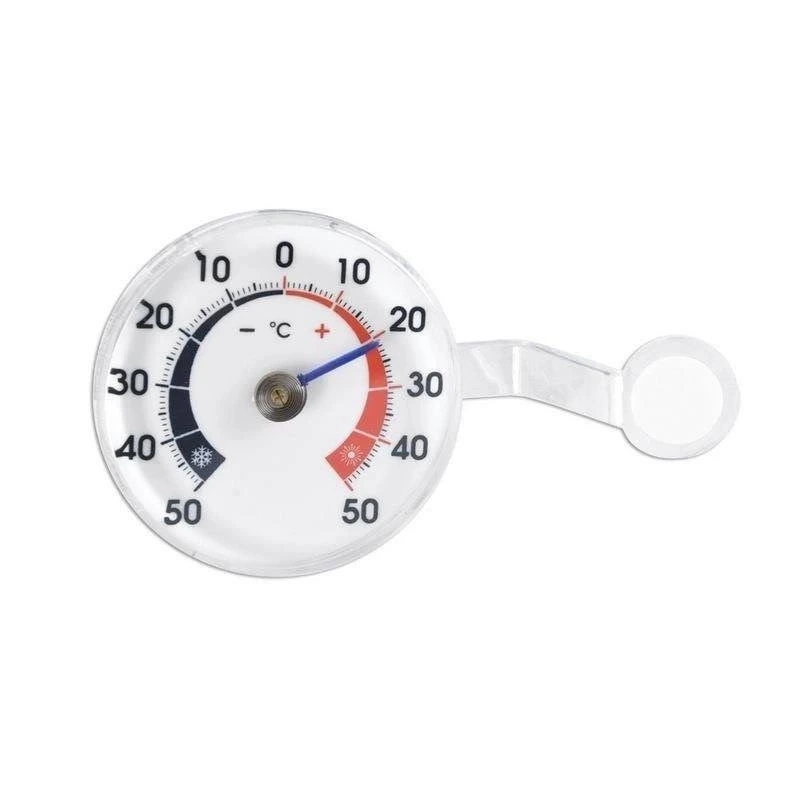 - Termometr przyklejany na okno informuje o aktualnej temperaturze na zewnątrz pomieszczeń. Posiada wyraźną skalę. Prosty, bezinwazyjny montaż.