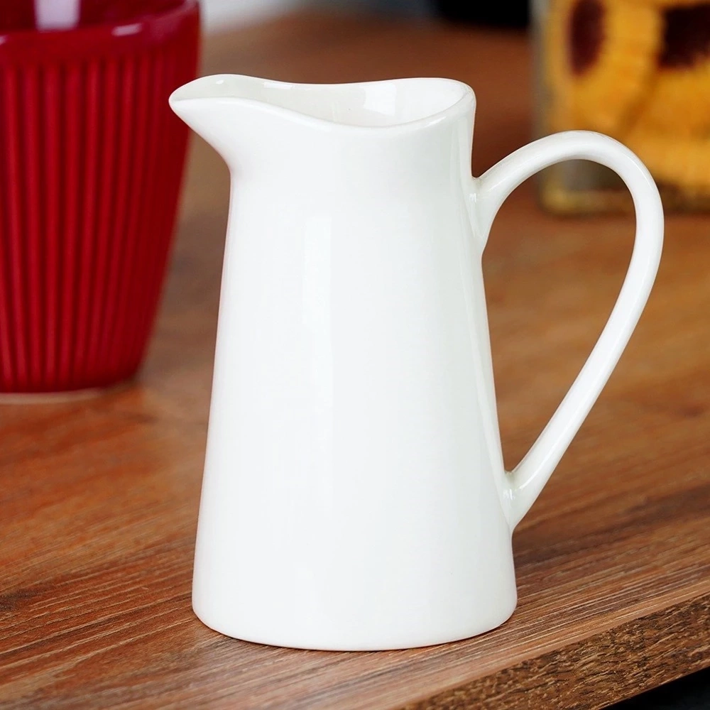 - Porcelanowy mlecznik z uchwytem. Posiada praktyczny dziubek, który pozwoli odmierzyć odpowiednią ilość śmietanki lub mleka. Pasuje z każdą zastawą stołową.