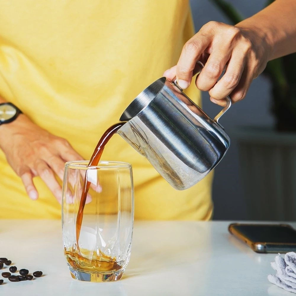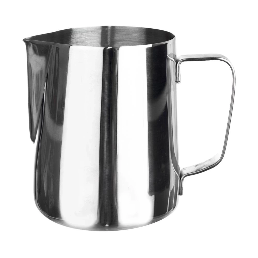 - Mlecznik z uchwytem wykonany ze stali nierdzewnej. Posiada praktyczny dziubek, który pozwoli odmierzyć odpowiednią ilość śmietanki lub mleka. Wewnątrz praktyczna miarka co 50 ml.