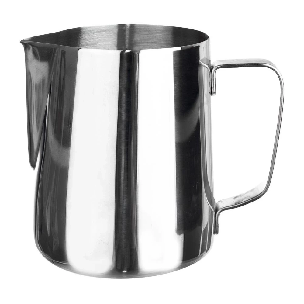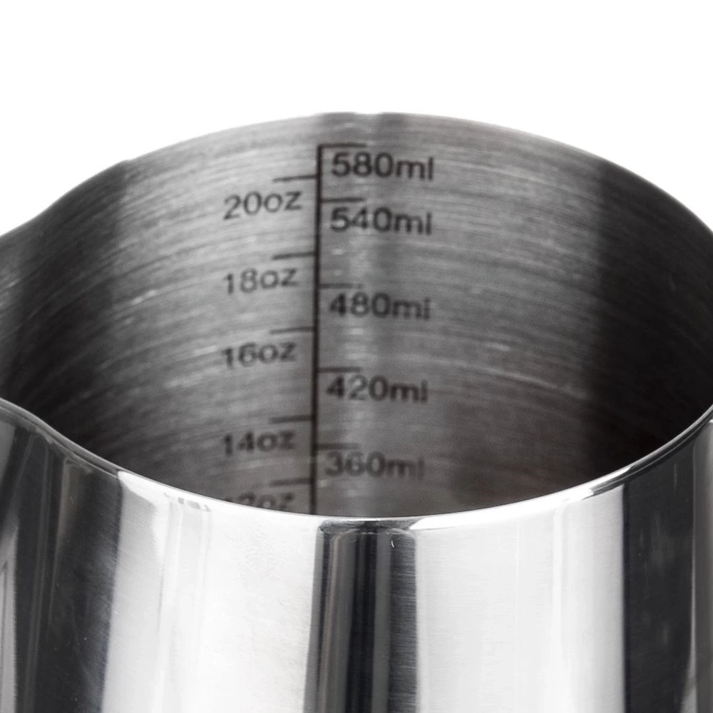 - Mlecznik z uchwytem wykonany ze stali nierdzewnej. Posiada praktyczny dziubek, który pozwoli odmierzyć odpowiednią ilość śmietanki lub mleka. W środku praktyczna miarka co 60 ml.