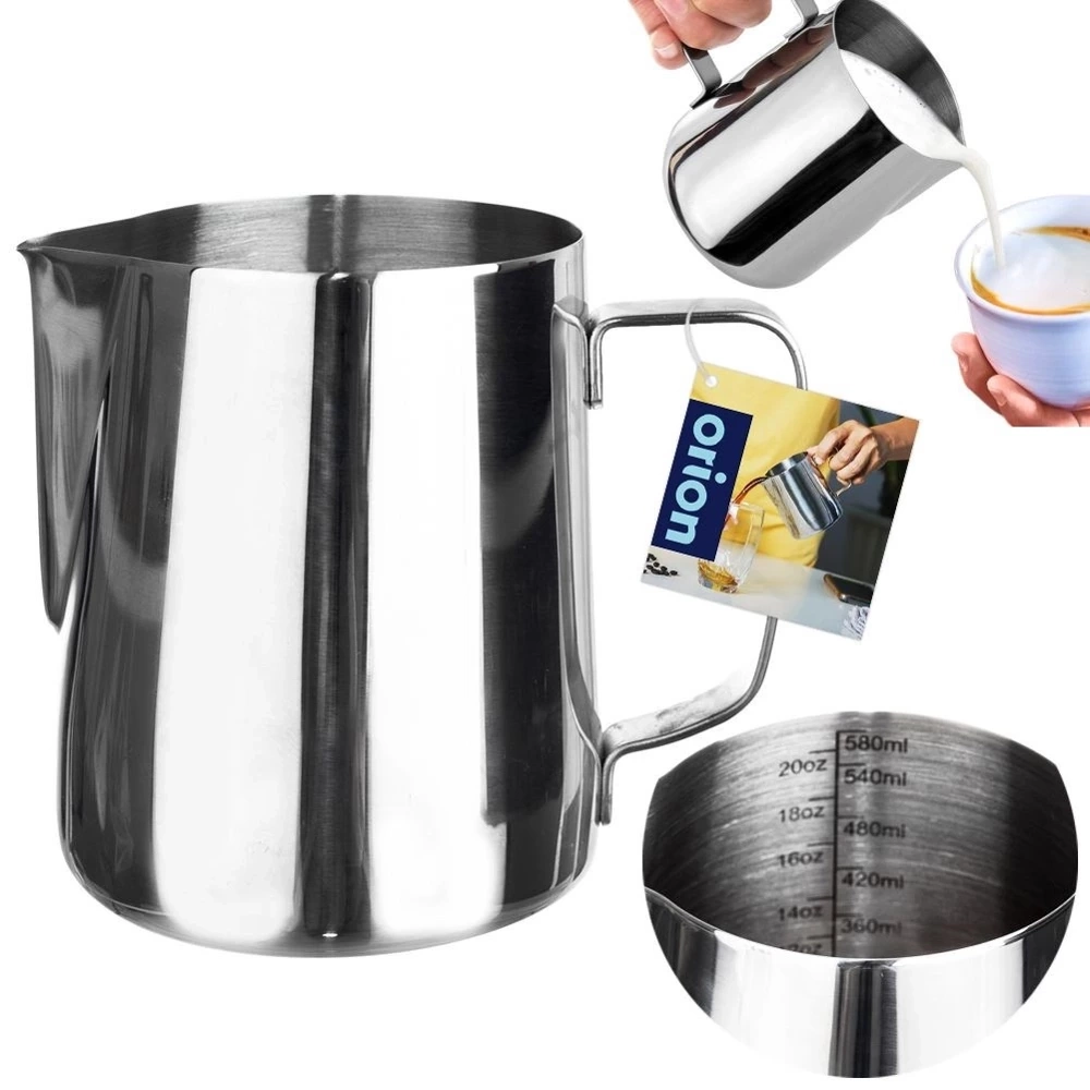 Dzbanuszek na mleko w całości wykonany ze stali nierdzewnej. Praktyczna miarka w środku pozwoli odmierzyć odpowiednią ilość mleka lub śmietanki do ulubionej kawy. Niezwykle przydatny do serwowania, ale również podgrzewania mleka. Pięknie prezentuje się na stole. Idealnie komponuje się z inną zastawą stołową. Oryginalny produkt czeskiej marki Orion. Wyprodukowano zgodnie z europejskimi standardami.