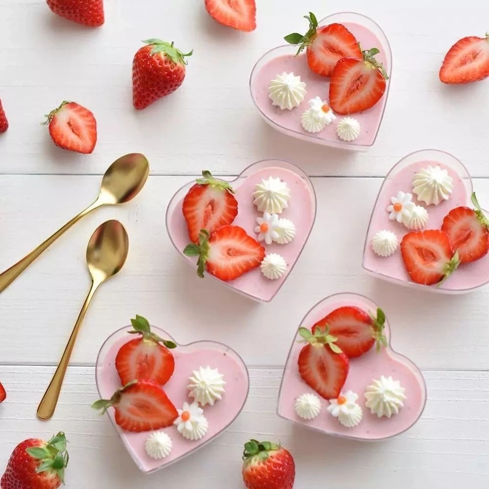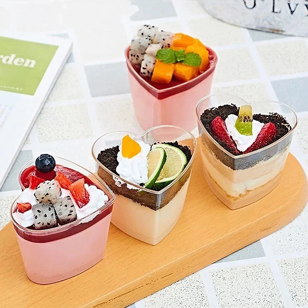 - Zestaw sześciu pucharków do serwowania słodkich i słonych przekąsek w kształcie serca. Idealne do podawania pana cotta, tiramisu, puddingów oraz pasztecików.