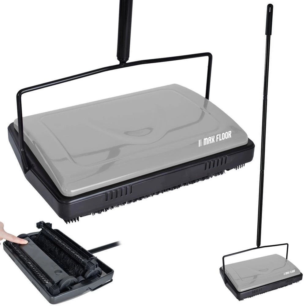 - PRAKTYCZNY - Ręczny odkurzacz mechaniczny z kijem, służy do regularnego czyszczenia wszystkich rodzajów podłóg. Odkurzacz nie wymaga zasilania elektrycznego ani baterii. Wymiary odkurzacza: 28 x 20 x 6 cm. Długość uchwytu: 93 cm.