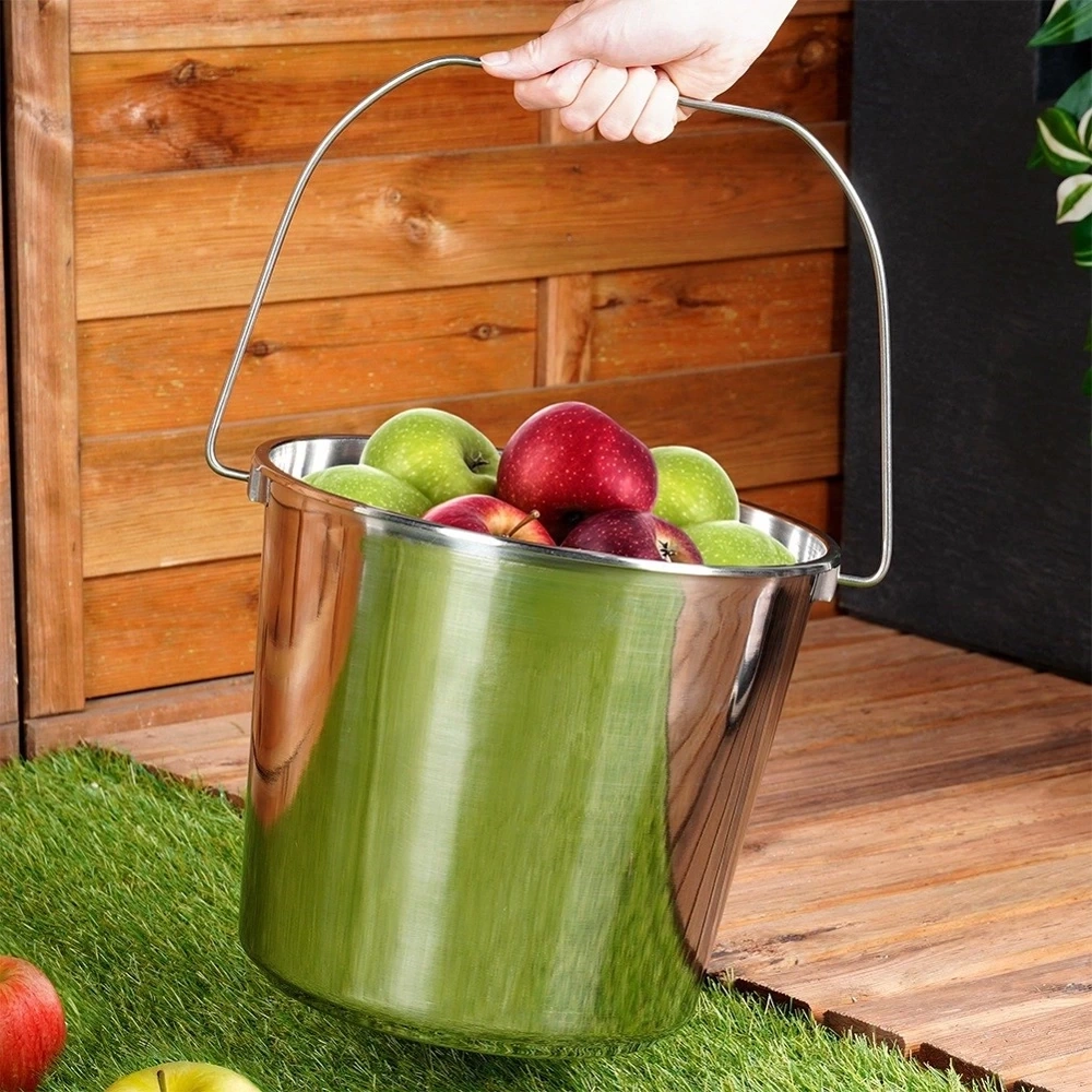 - Wiadro o pojemności 12 l z uchwytem, nadaje się do kontaktu z żywnością. Wykonane z wysokiej jakości stali nierdzewnej. Idealne do użytku domowego oraz w gastronomii.