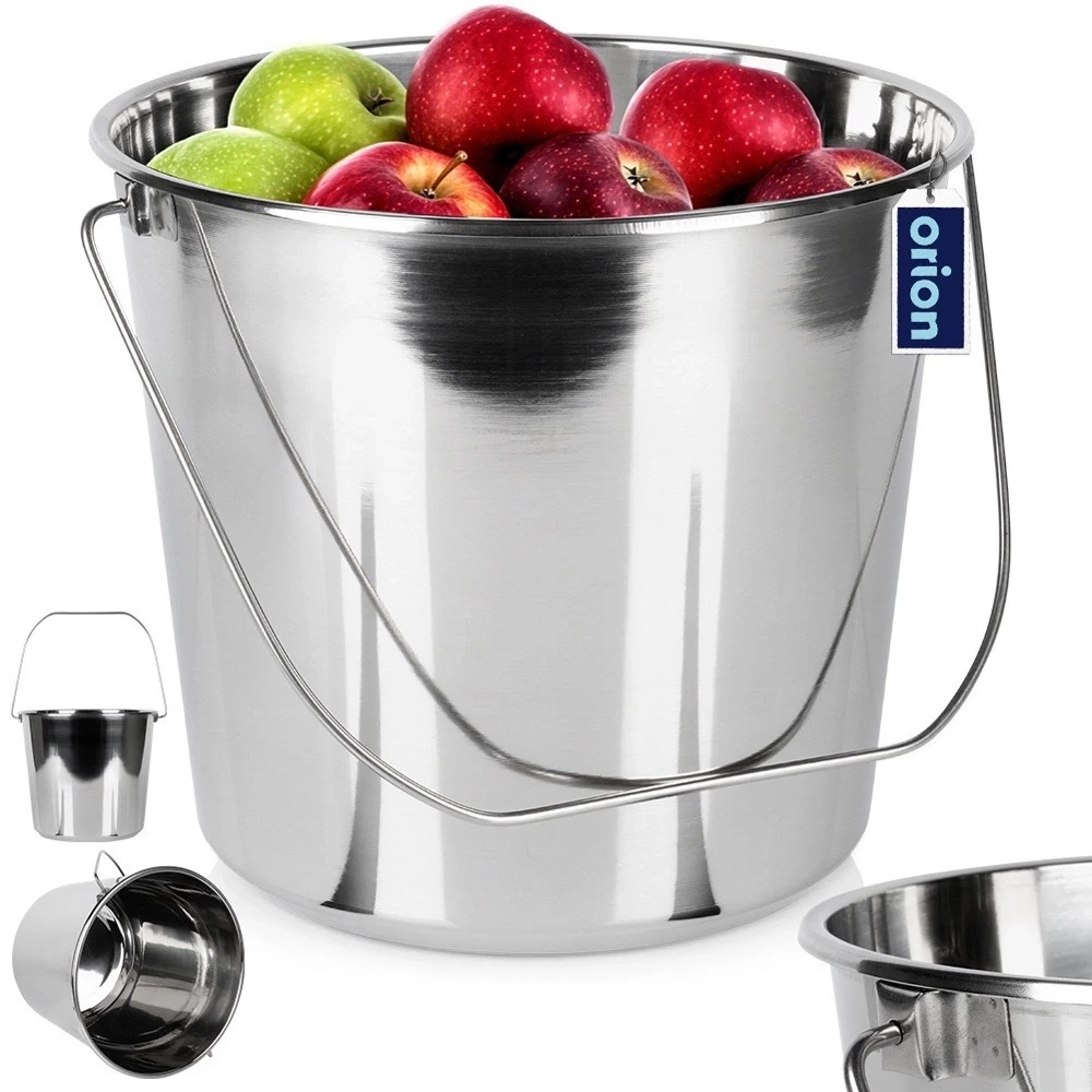 - Wiadro o pojemności 18 l z uchwytem, nadaje się do kontaktu z żywnością. Wykonane z wysokiej jakości stali nierdzewnej. Idealne do użytku domowego oraz w gastronomii.