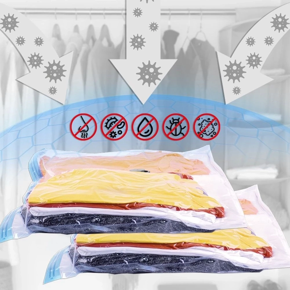 - ŁATWE UŻYTKOWANIE - Z wypełnionego worka rzeczami zasysamy powietrze za pomocą odkurzacza lub pompy ssącej, dzięki czemu zmniejszamy objętość worka i zyskamy na przestrzeni. Dzięki usunięciu nadmiaru powietrza możemy zaoszczędzić do 75% miejsca. Bardzo przydatny podczas podróży bądź przeprowadzki.