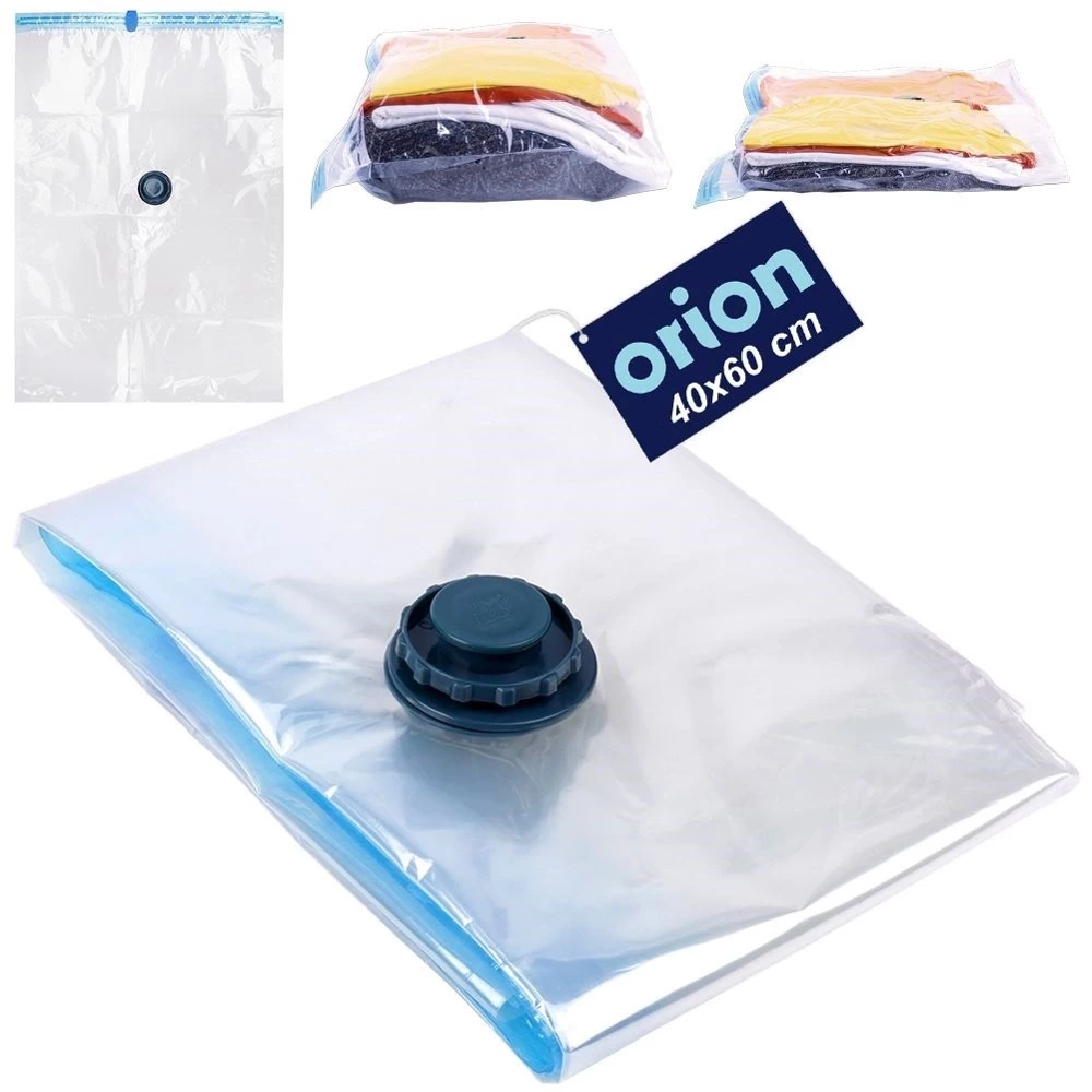 Worek próżniowy do przechowywania odzieży, maskotek czy dodatkowej pościeli. Pozwoli uzyskać więcej miejsca podczas przechowywania ubrań i tekstyliów pościelowych. Worki ochronią przechowywane produkty przed kurzem, brudem, roztoczami oraz molami. Niezwykle prosty w obsłudze. Po wypełnieniu worka rzeczami, zasysamy powietrze za pomocą odkurzacza lub pompy ssącej, dzięki czemu zmniejszamy objętość worka i zyskamy na przestrzeni. Oryginalny produkt czeskiej marki Orion. Wyprodukowano zgodnie z europejskimi standardami.