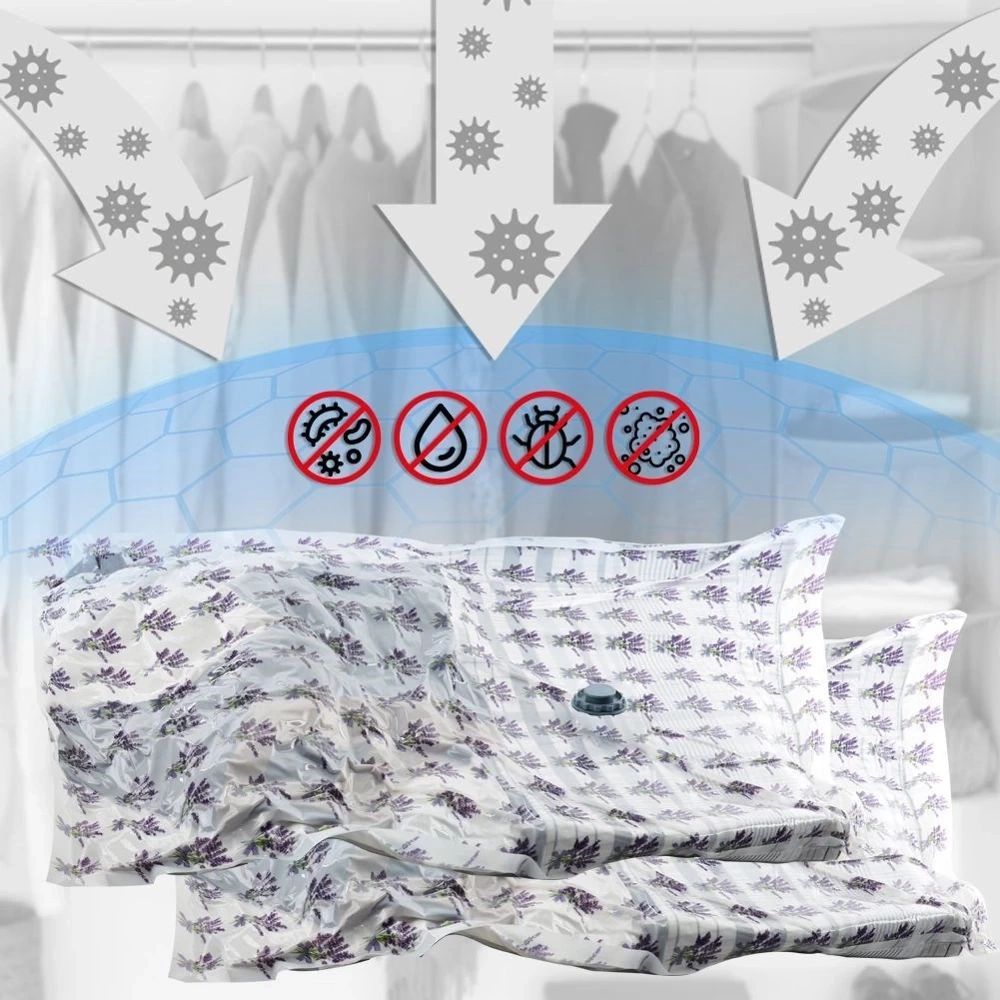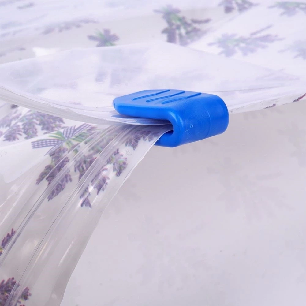 - Worek próżniowy odpowiedni do przechowywania ubrań, pościeli, maskotek itp. Dzięki niemu zaoszczędzimy miejsce podczas przechowywania. Pozostawia delikatny zapach lawendy.