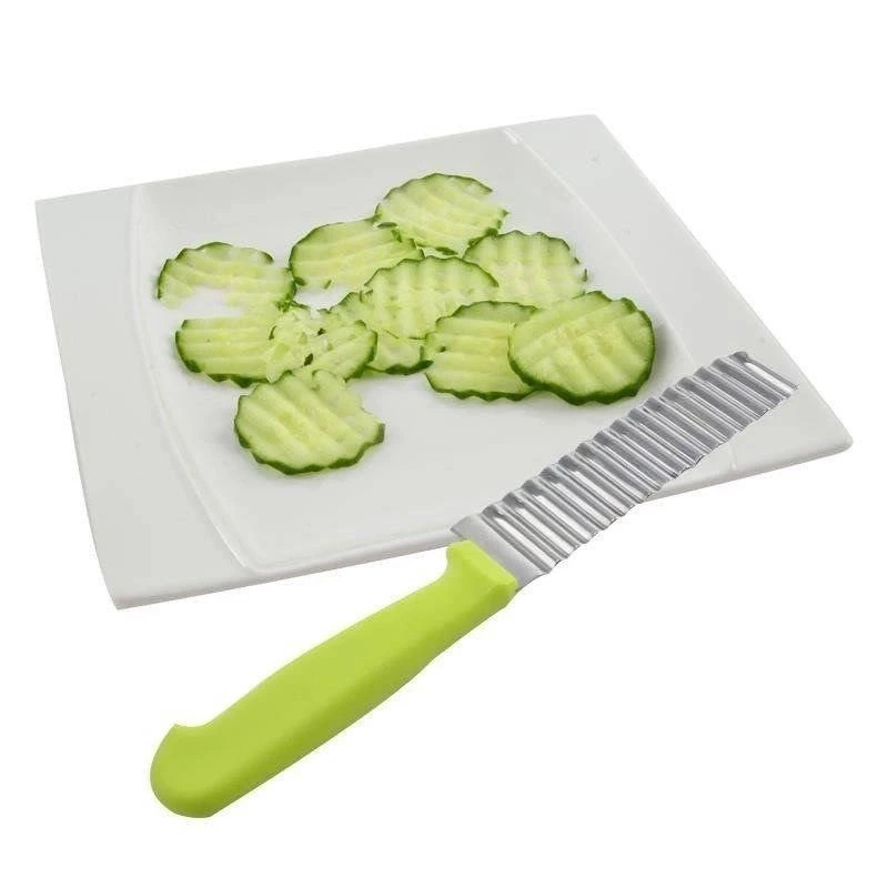 - Karbowany nóż do ozdobnego krojenia warzyw, owoców. Wykonany ze stali nierdzewnej z wygodnym uchwytem z tworzywa. Idealny do karbowanych frytek.