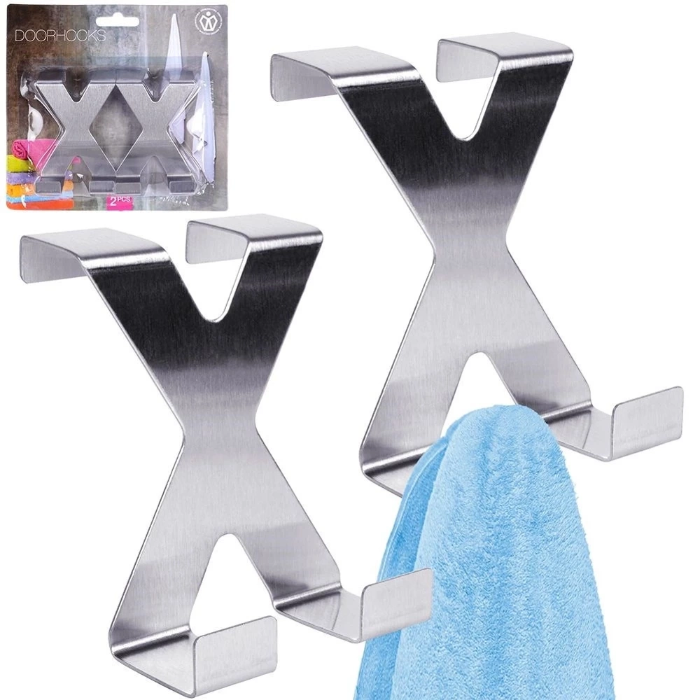 - PRAKTYCZNE - Zestaw dwóch, podwójnych wieszaków zakładanych na drzwi. Każdy z haczyków ma wymiary 4,5 x 5 x 7 cm.