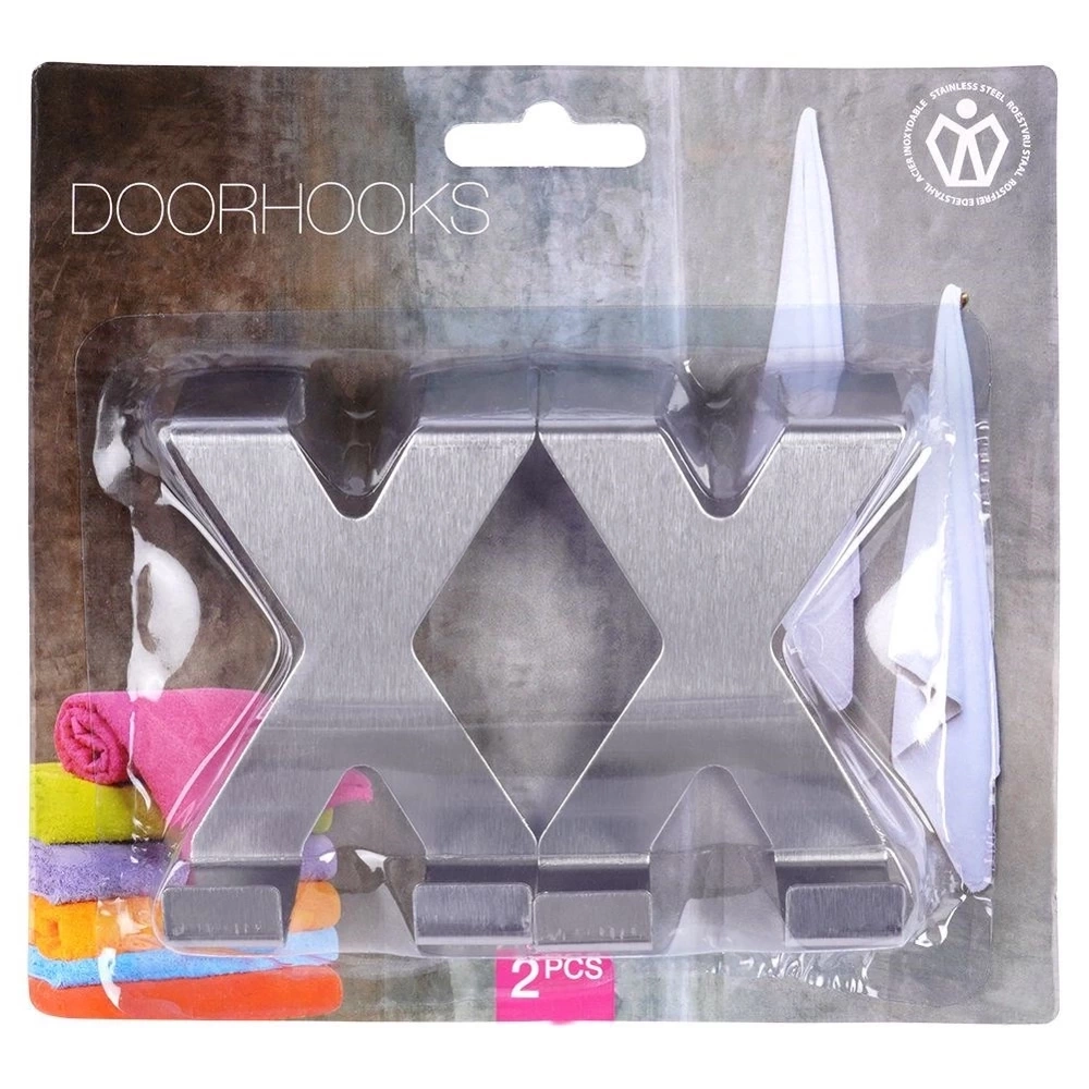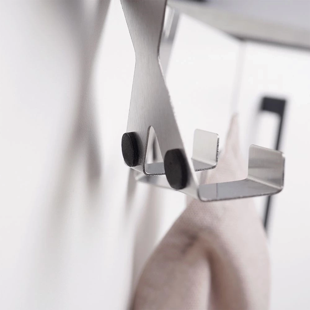 - Zestaw dwóch, podwójnych haczyków na drzwi , wykonanych ze stali nierdzewnej. Sprawdzą się w łazience, przedpokoju i innych pomieszczeniach. Łatwy montaż bez wiercenia.