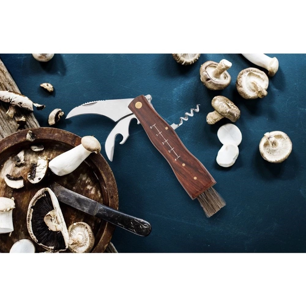 - Nożyk do grzybów z pędzelkiem do oczyszczania grzybów oraz korkociągiem. Kompaktowy rozmiar można mieć go zawsze przy sobie. Niezwykle solidny.