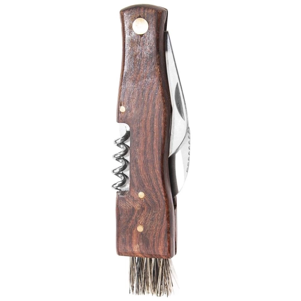 - WIELOFUNKCYJNY - Nożyk jest wielofunkcyjny i znajdzie wiele zastosowań. Dodatkowo, posiada otwieracz do kapsli oraz korkociąg. Dzięki temu nożyk umożliwi bezpieczne otwieranie różnych butelek wina, a także ściągania kapsli z butelek piwa lub napojów gazowanych.