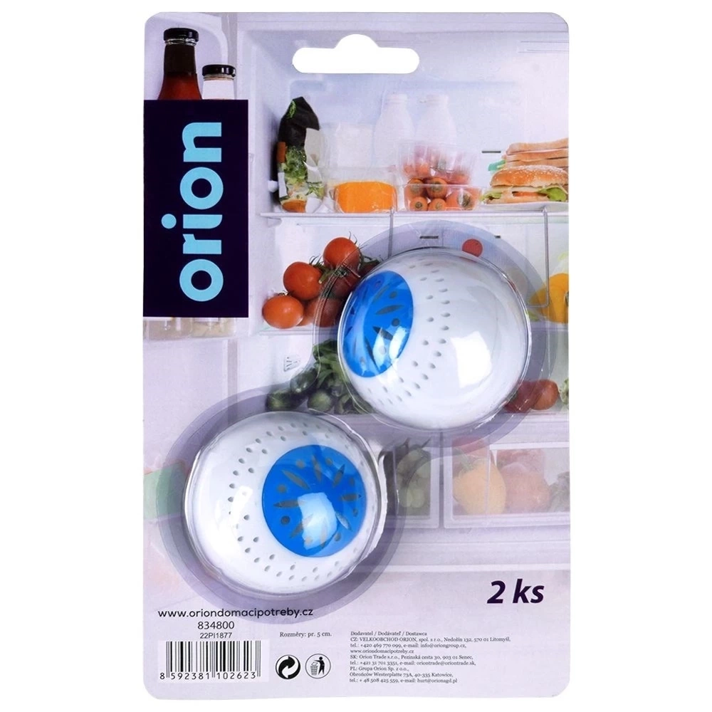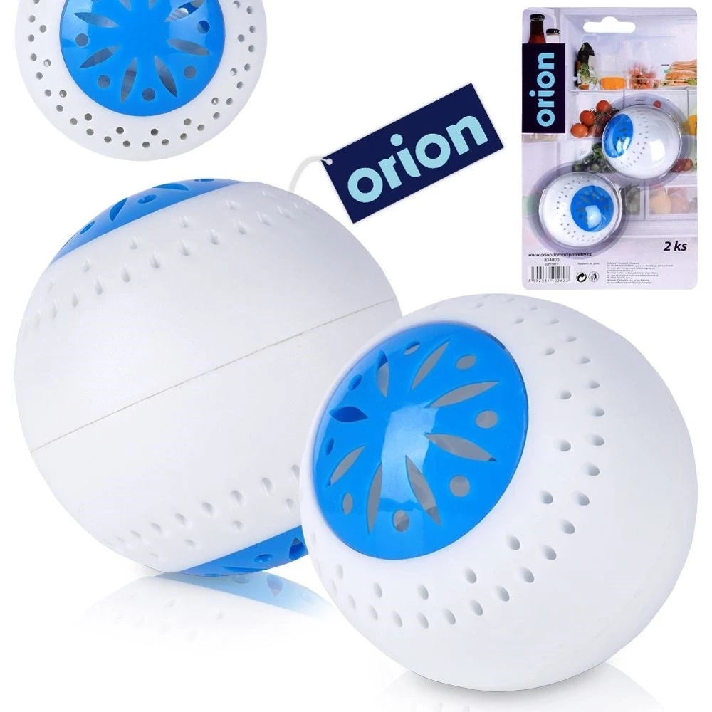 Komplet dwóch pochłaniaczy zapachów w kształcie kuli, które można umieścić w lodówce. Łatwe w użyciu i wygodne w użytkowaniu. Umieszczenie ich w lodówce pomaga w pochłanianiu nieprzyjemnych zapachów pochodzących z różnych produktów spożywczych, zapobiegając przenikaniu i mieszaniu się aromatów. Przydatne w każdym domu, pozwolą zachować świeżość produktów spożywczych na dłużej. Oryginalny produkt czeskiej marki Orion. Wyprodukowano zgodnie z europejskimi standardami.