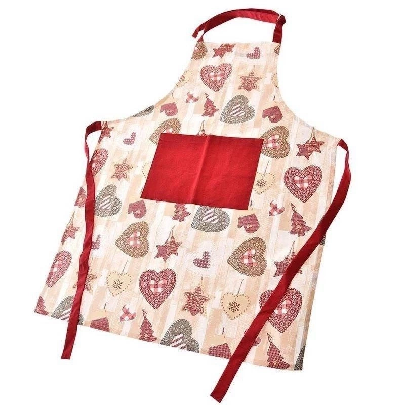 - BAWEŁNIANY - Bawełniany, wiązany fartuch kuchenny w świątecznym wzorze. Stylowy fartuch będzie ciekawym elementem ochronnym i ozdobnym odzieży w kuchni. Fartuch kuchenny o wymiarach 85 x 70 cm.