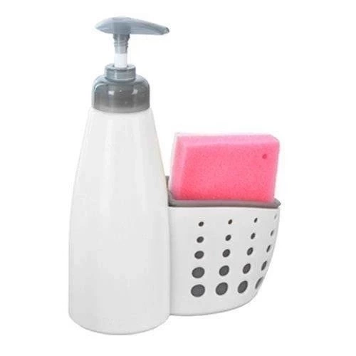 - Dozownik do płyny do naczyń lub mydła w łazienkach i kuchniach w zestawie z dwustronną gąbeczką. Wyposażony w kieszeń na ściereczkę lub gąbkę. Niezwykle przydatny.