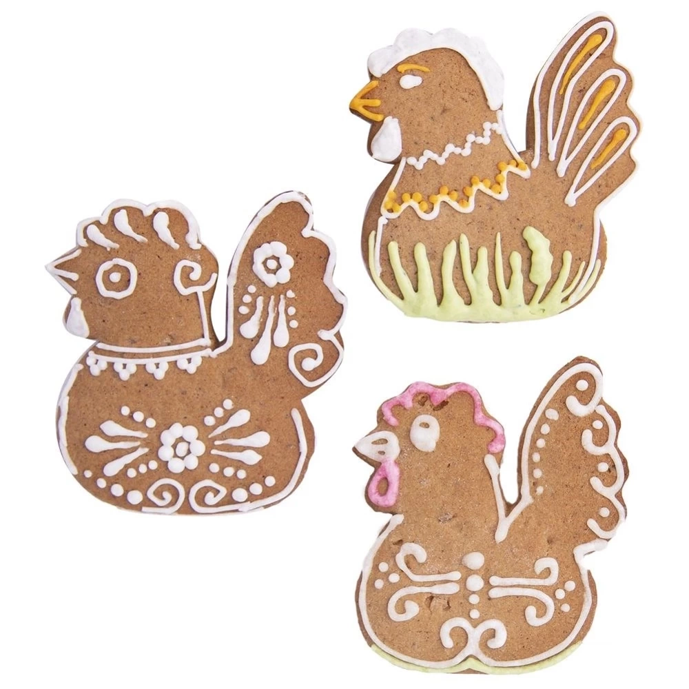 - Wykonany ze stali nierdzewnej wykrawacz cukierniczy do ciastek i pierników. Foremka jest w kształcie kury, dzięki niej stworzysz oryginalne ciastka.