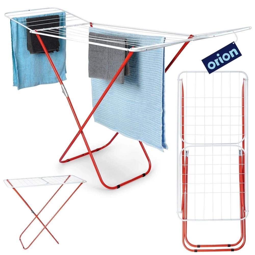 Rozkładana suszarka na pranie. Suszarka solidnie wykonana, utrzymana w modnej kolorystyce. Posiada dużą powierzchnię suszenia, dzięki czemu w wygodny sposób rozwiesimy pranie. Dzięki funkcji składania suszarka po złożeniu nie zajmuje dużo miejsca. Niezbędna w każdym domu. Oryginalny produkt czeskiej marki Orion. Wyprodukowano zgodnie z europejskimi standardami.