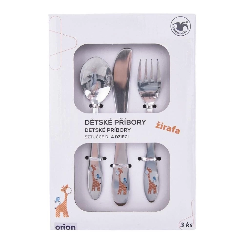 - 3-elementowy zestaw sztućców dla dziecka z dekorem żyrafy. Zestaw zawiera łyżeczkę, widelec oraz nóż. Wykonane ze stali nierdzewnej.