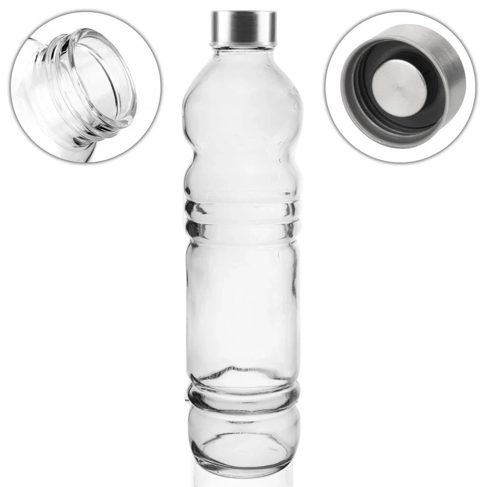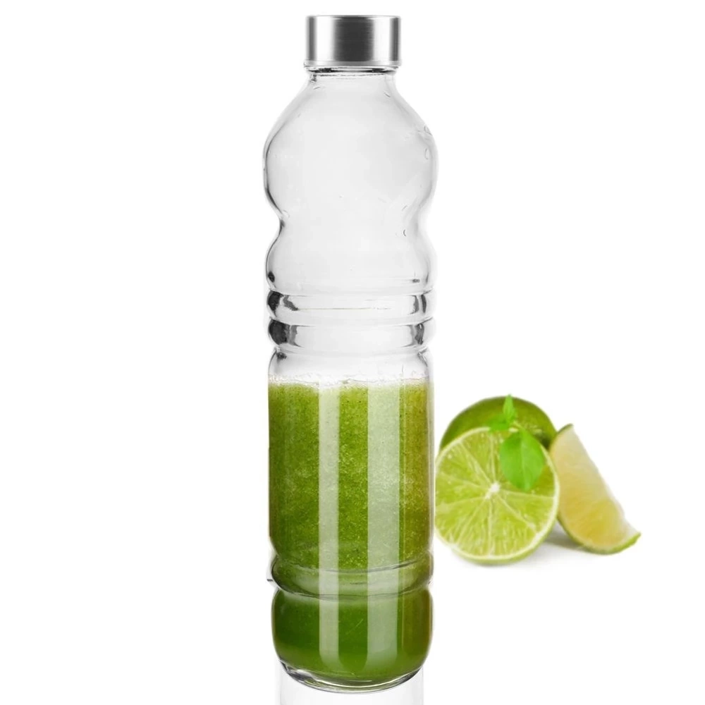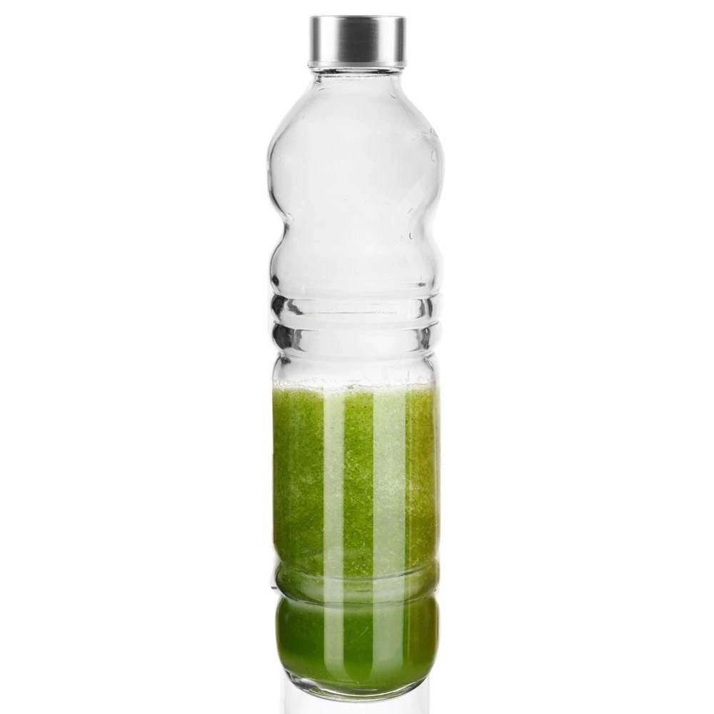 - Butelka szklana na wodę. Posiada metalową zakrętkę oraz uszczelkę, która zapewnia jej szczelność. Idealna również do soków, lemoniad, smoothie i koktajli.