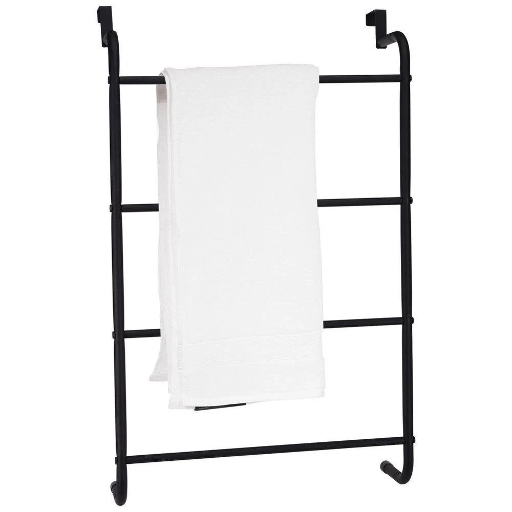 Wieszak na ręczniki do zawieszenia na drzwiach. Takie rozwiązanie pozwoli nam na wykorzystanie przestrzeni nawet w małych pomieszczeniach. Wieszak pasuje na większość drzwi a jego montaż jest bardzo prosty - wystarczy zawiesić go na drzwiach. Posiada 4 poziomy na których możemy przechowywać ręczniki. Oryginalny produkt holenderskiej marki Bathroom Solutions. Wyprodukowano zgodnie z europejskimi standardami.