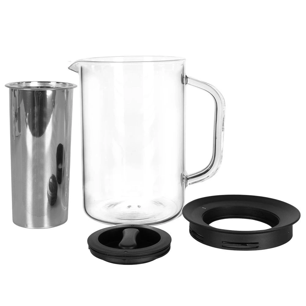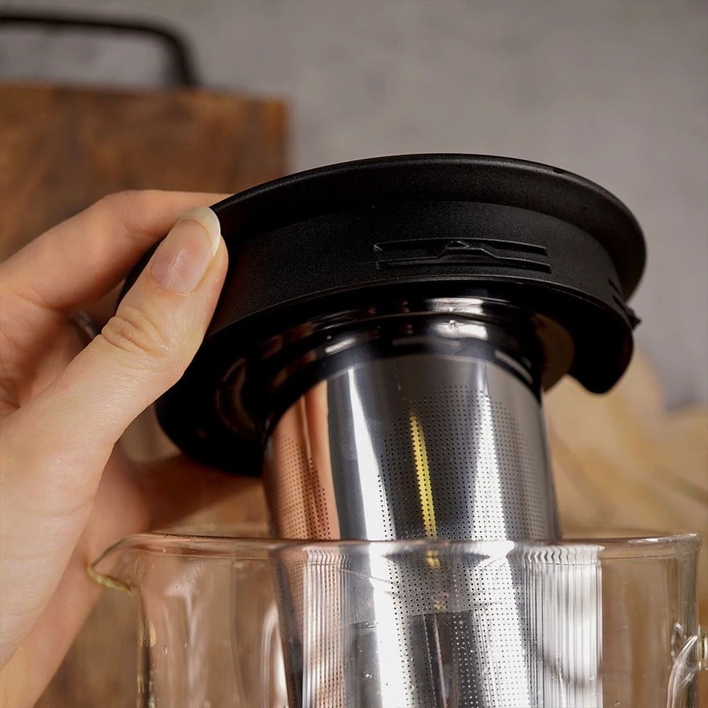 - WYTRZYMAŁY - Wykonany z wysokiej jakości szkła borokrzemowego odpornego na temperatury od -20°C do +180°C. Należy podgrzewać stopniowo. Sitko wykonane z wysokiej jakości stali nierdzewnej, a pokrywka z wytrzymałego tworzywa.
