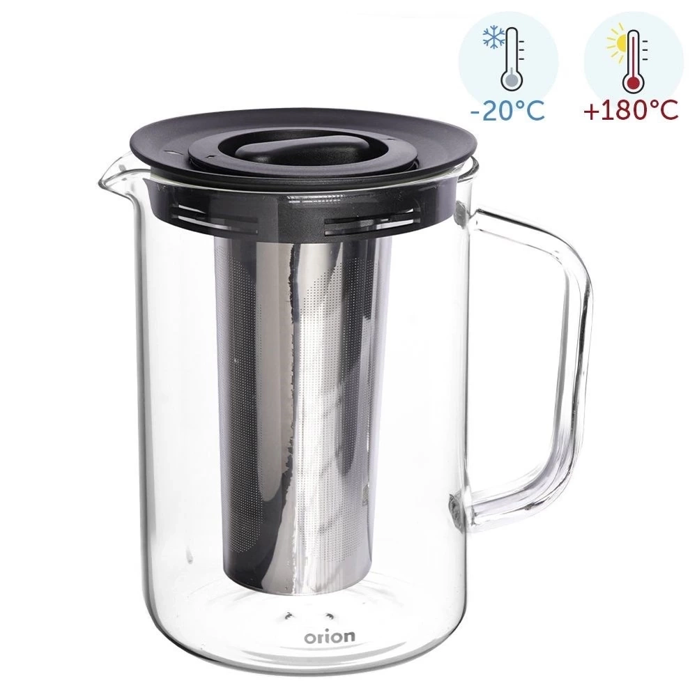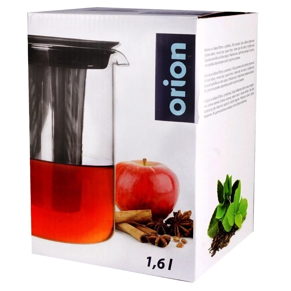 Klasyczny dzbanek w nowoczesnym wydaniu. Dzbanek pozwoli na proste przygotowanie ulubionej herbaty bez fusów. Wykonany ze szkła odpornego na wysoką temperaturę. Będzie doskonałym pomysłem na prezent dla miłośnika parzonej herbaty. Dzbanek ma 1500 ml pojemności, średnicę 11 cm oraz wysokość 18,5 cm. Oryginalny produkt czeskiej marki Orion. Wyprodukowano zgodnie z europejskimi standardami.
