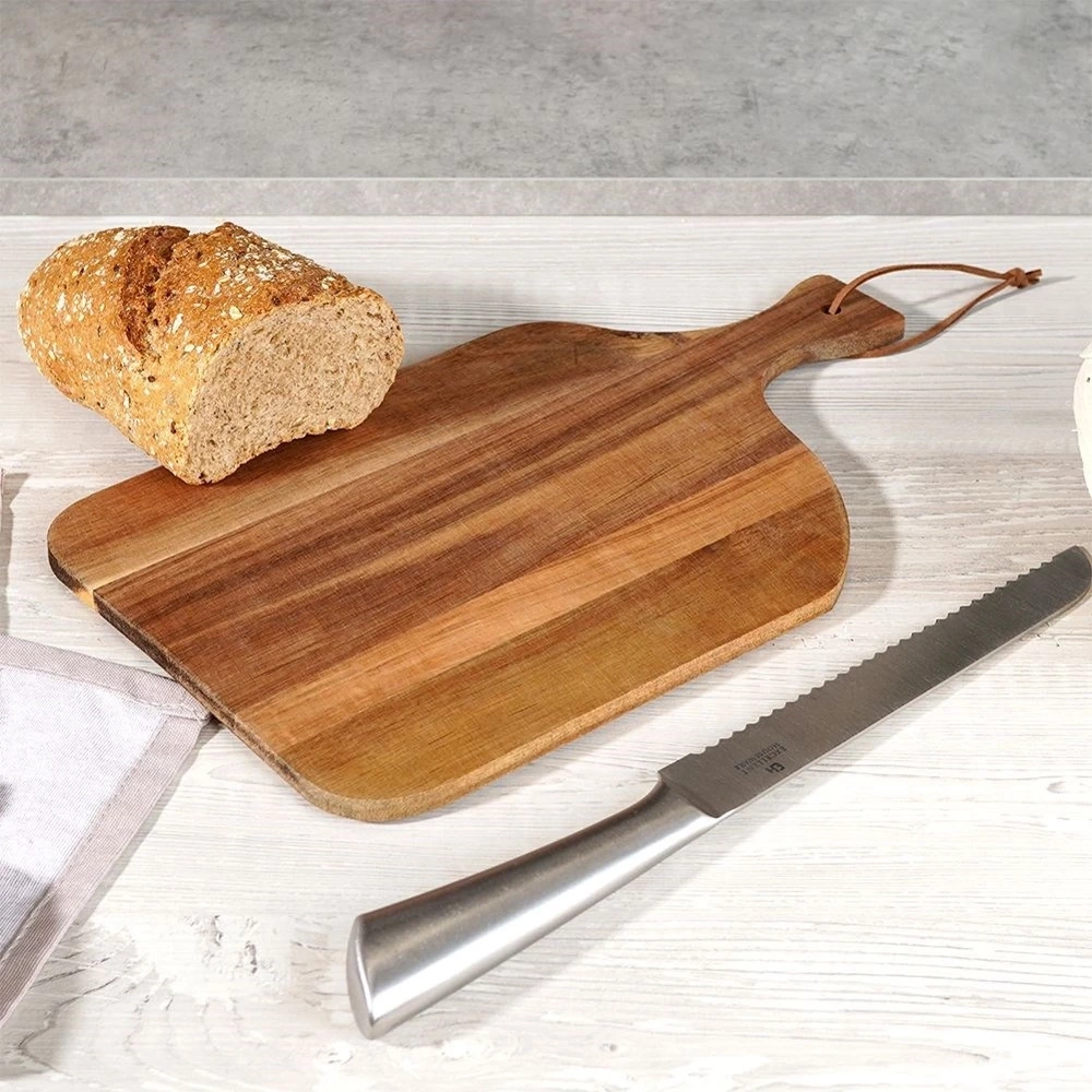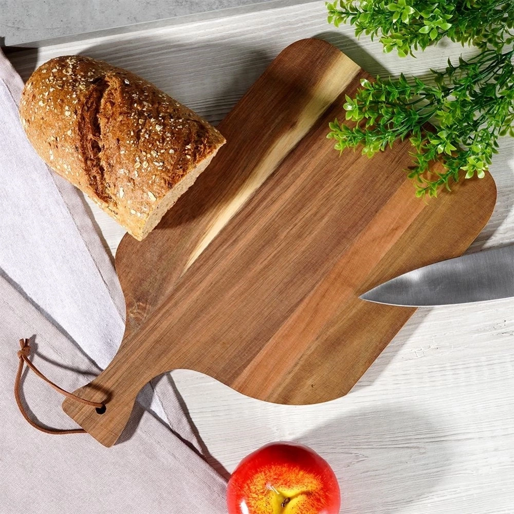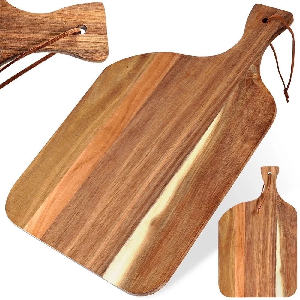 - Deska kuchenna z uchwytem wykonana z drewna akacjowego. Sprawdzi się do krojenia oraz serwowania przystawek i dań ciepłych oraz zimnych.