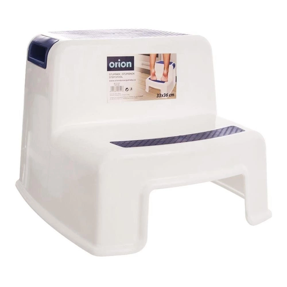 Podwójny schodek antypoślizgowy przydatny w każdym domu. Podczas użytkowania go, dzieci mogą swobodnie podwyższyć swoją pozycję, co ułatwi korzystanie z toalety, umywalki, czy pozwoli dostać się do półek umieszczonych wyżej. Podnóżek zajmuje mało miejsca. Pomoże każdemu, kto z różnych powodów ma problem z samodzielnym dosięgnięciem niektórych elementów wyposażenia lub wejściem do wanny czy brodzika. Schodek jest stabilny i wytrzymały. Oryginalny produkt czeskiej marki Orion. Wyprodukowano zgodnie z europejskimi standardami.