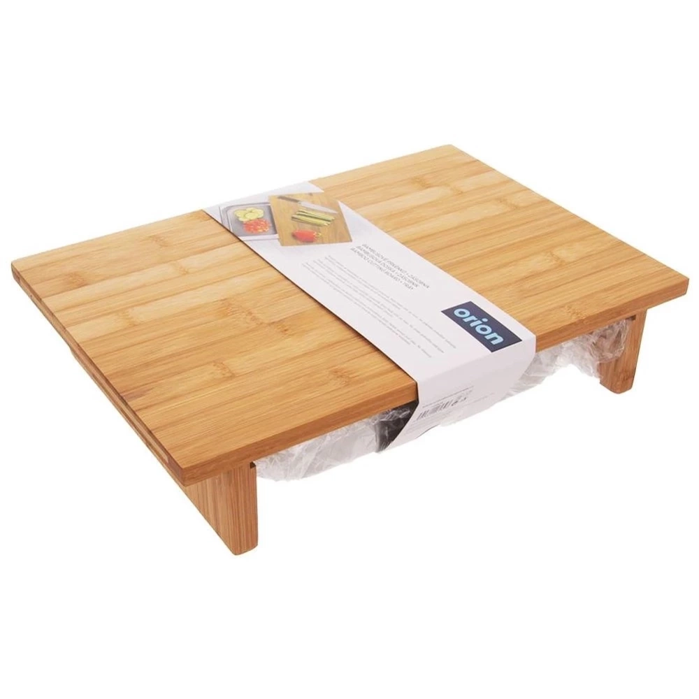 Deska do krojenia z wysuwanym pojemnikiem. Deska wykonana z drewna bambusowego a pojemnik ze stali nierdzewnej. Niezwykle przydatny patent podczas krojenia składników na sałatki owocowe lub warzywne. Pokrojone składniki możemy od razu umieścić w pojemniku bez trudności przekładania. Dodatkowo pojemnik możemy wykorzystać do serwowania, dzięki czemu nie musimy brudzić dużej ilości naczyń. Pojemnik możemy wykorzystać również jako miejsce do odkładania resztek podczas krojenia, wówczas w łatwy sposób wszystkie obierki bezpośrednio z pojemnika możemy umieścić w koszu na śmieci. Produkt jest niezwykle praktyczny, zajmuje mało miejsca. Oryginalny produkt czeskiej marki Orion. Wyprodukowano zgodnie z europejskimi standardami.