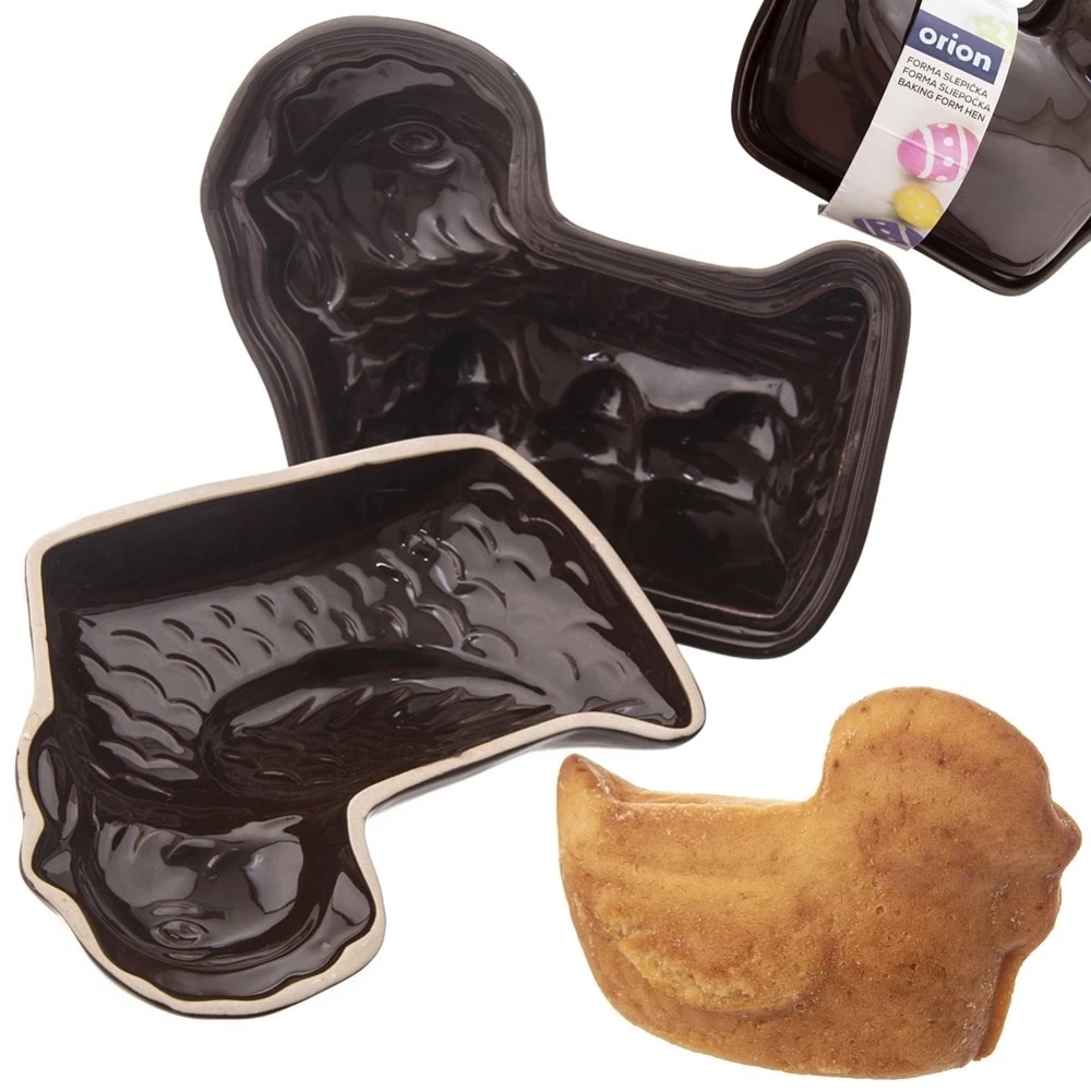 Ceramiczna forma do przygotowania babki, ale również galaretki, pasztetu i wielu innych smakołyków w kształcie kury. Odpowiedni kształt formy pozwoli na upieczenie kurczaczka z dbałością o detale. Kurczątko po wyjęciu z formy będzie prezentować się niezwykle efektownie i będzie świetną dekoracją stołu wielkanocnego lub koszyczka. Wykonana z materiałów bezpiecznych dla zdrowia i neutralnych dla żywności. W celu odpowiedniej konserwacji nie zaleca się mycia w zmywarce do naczyń. Dolnej części naczynia należy zapewnić swobodny dopływ powietrza, wkładać zawsze w piekarniku na kratkę. Formę przed użyciem należy dokładnie natłuścić i posypać mąką. Po wyciągnięciu z piekarnika, zaleca się umieszczenie gorącego naczynia na drewnianej powierzchni (deska, blat). Oryginalny produkt czeskiej marki Orion. Wyprodukowano zgodnie z europejskimi standardami.