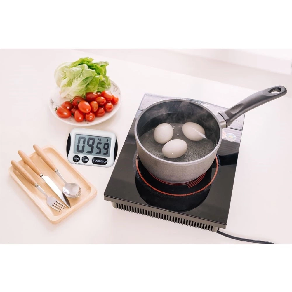 - Cyfrowy minutnik, pomoże odmierzyć czas potrzebny do przygotowania różnych potraw. Posiada podpórkę, zawieszkę oraz magnes, dzięki czemu można go umieścić w dowolnym miejscu.