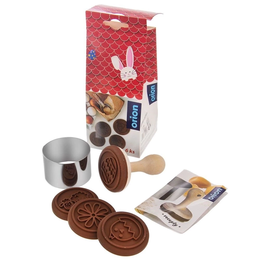 Zestaw do dekorowania ciasteczek z czterema silikonowymi nakładkami oraz stalową obręczą do idealnego formowania ciasteczek. Nakładki posiadają wielkanocny wzór, więc pozwolą przygotować efektowne ciasteczka z Wielkanocnym motywem. Użytkowanie pieczątek będzie wygodne, gdyż posiadają wyprofilowany uchwyt, więc dziecko bez użycia siły będzie mogło z nich korzystać, tworząc piękne wzory na ciasteczkach. Ciasteczka na pewno zaskoczą gości oraz dzieci domowymi wypiekami z wyjątkowym motywem. Oryginalny produkt czeskiej marki Orion. Wyprodukowano zgodnie z europejskimi standardami.
