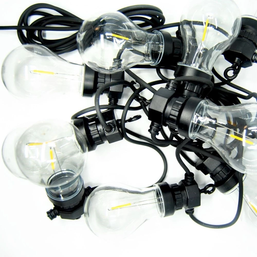 - Girlanda do zastosowania wewnątrz oraz na zewnątrz pomieszczeń. Posiada przezroczyste żarówki o ciepłej barwie. Idealna do ogrodu, na taras, czy balkon.