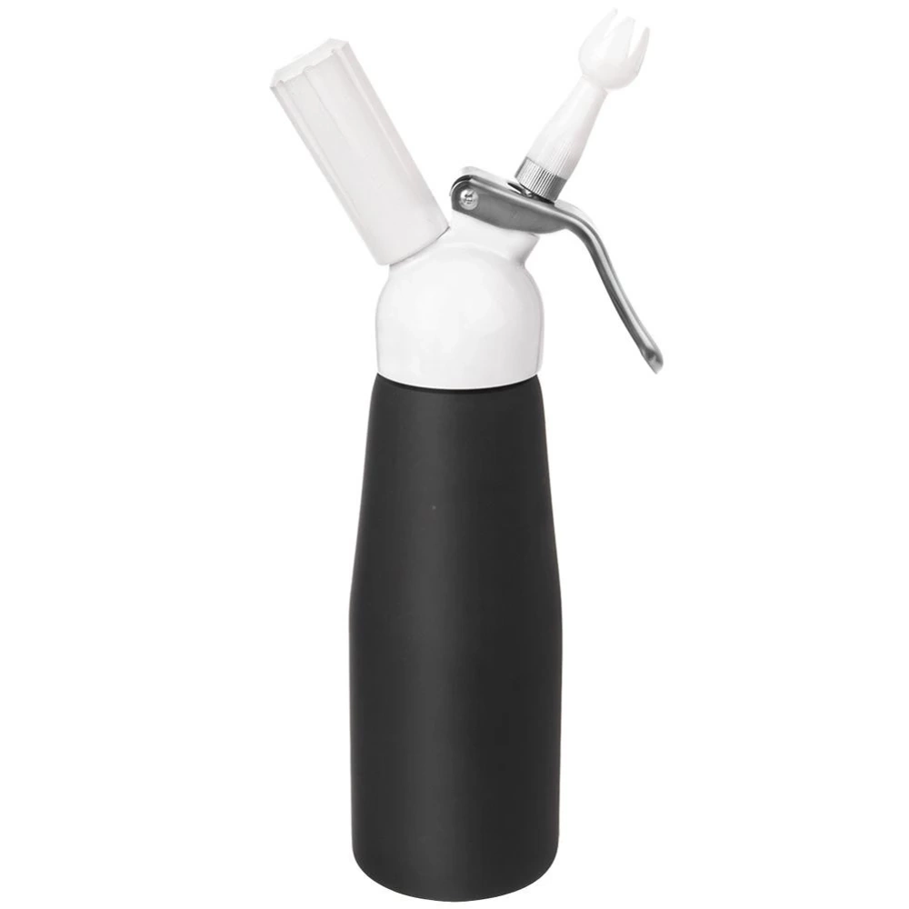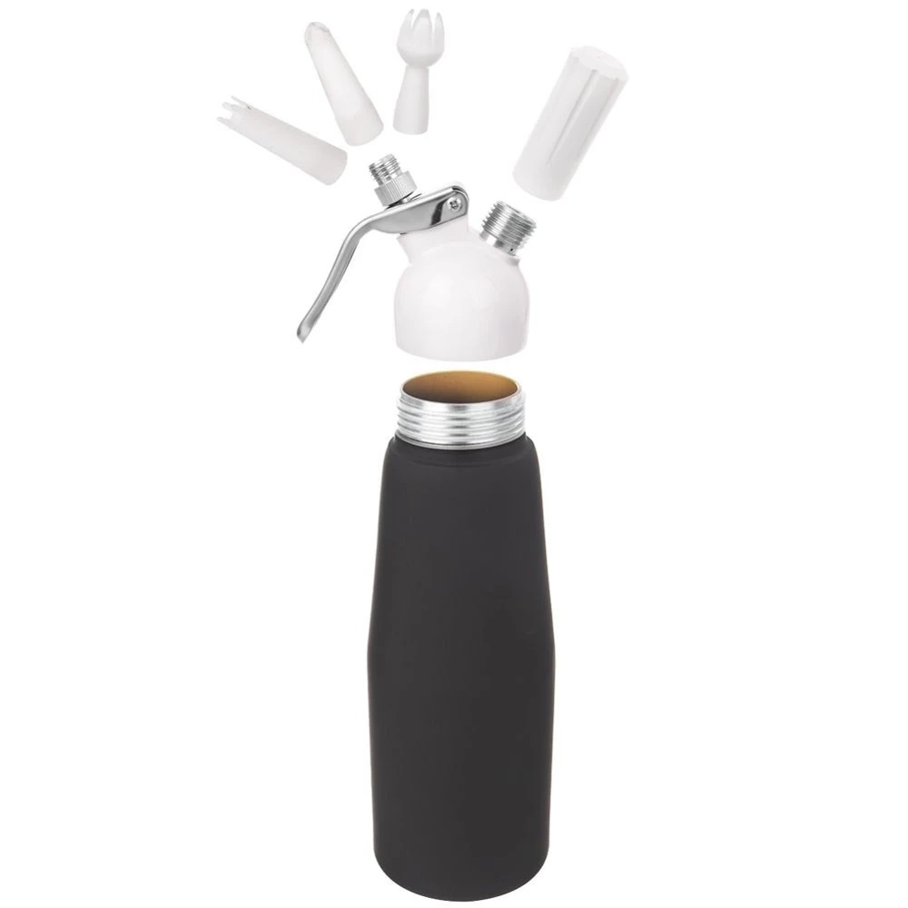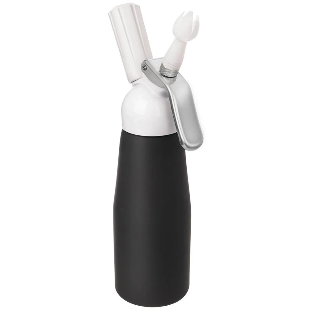 - Syfon do przygotowania i serwowania bitej śmietany z trzema różnymi końcówki do dekoracji. Pozwoli przygotować od 250 do 330 ml bitej śmietany. Do użytku z nabojami N2O.