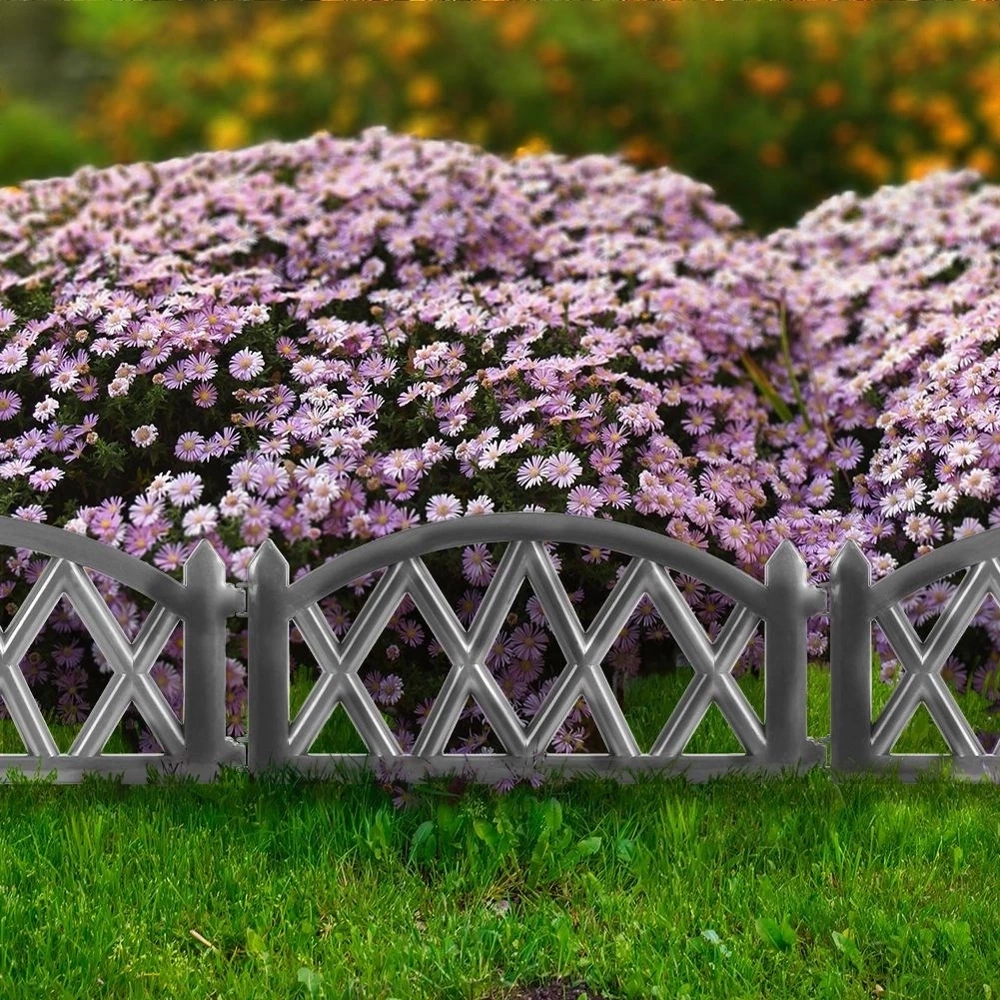 Zestaw składający się z 6 sztuk palisady ogrodowej o łącznej długości po złożeniu 300 cm. Każdy płotek ma wymiary 50 x 30 cm. Niezwykle solidnie wykonany z wysokiej jakości tworzywa w ciemnoszarym kolorze. Stanowi efektowną i praktyczną ozdobę w ogrodzie. Dekoracyjny płotek ogrodowy będzie wyjątkowym obrzeżem dla roślin w ogrodzie. Odporny na warunki atmosferyczne. Oryginalny produkt marki Vilde. Wyprodukowano zgodnie z europejskimi standardami.