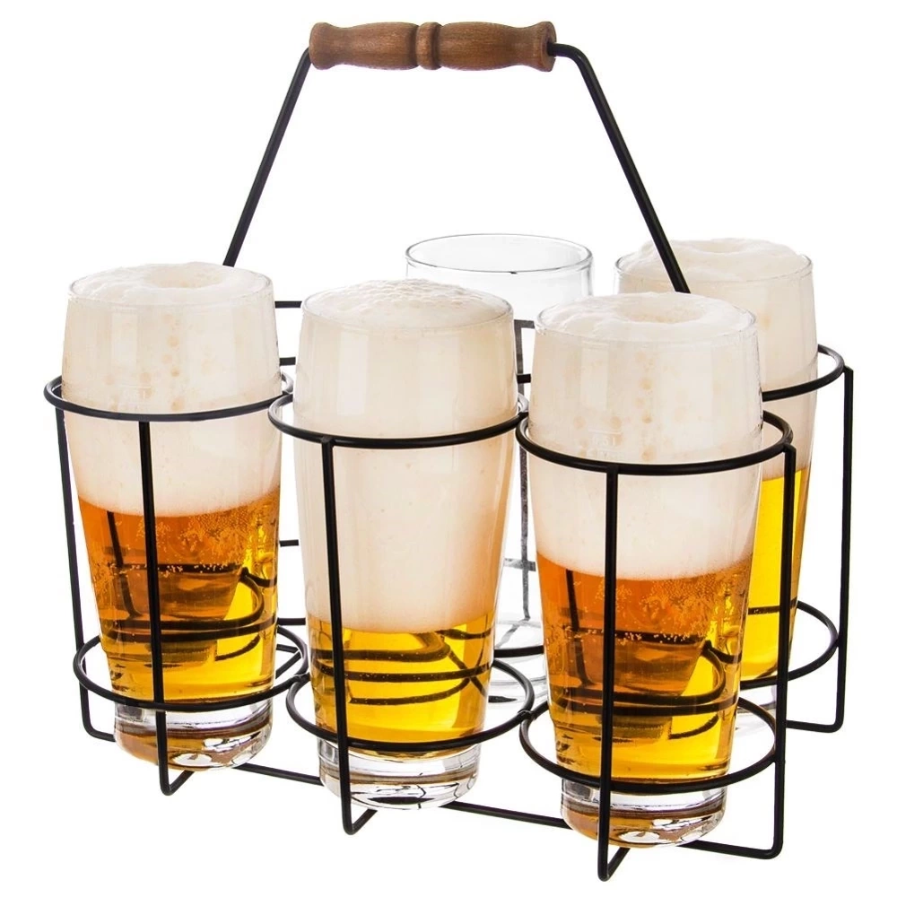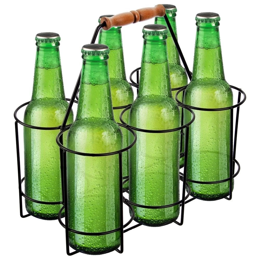 - Wygodna, metalowa skrzynka do przenoszenia sześciu butelek lub szklanek. Szczególnie polecana do piwa. Wyposażona w wygodny, drewniany uchwyt do przenoszenia.