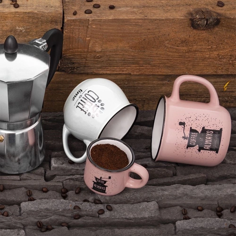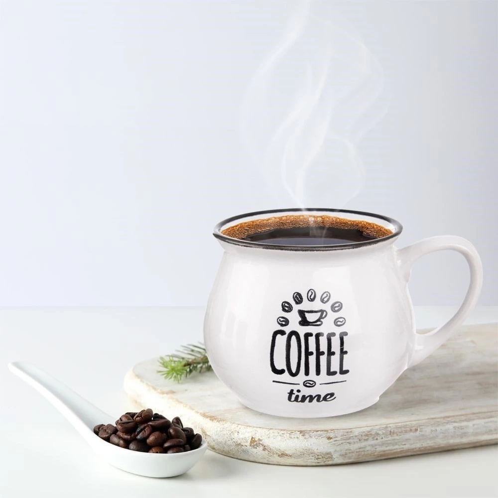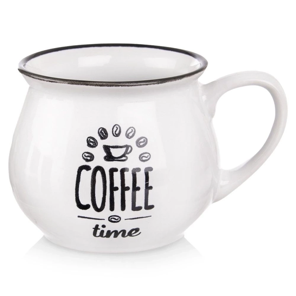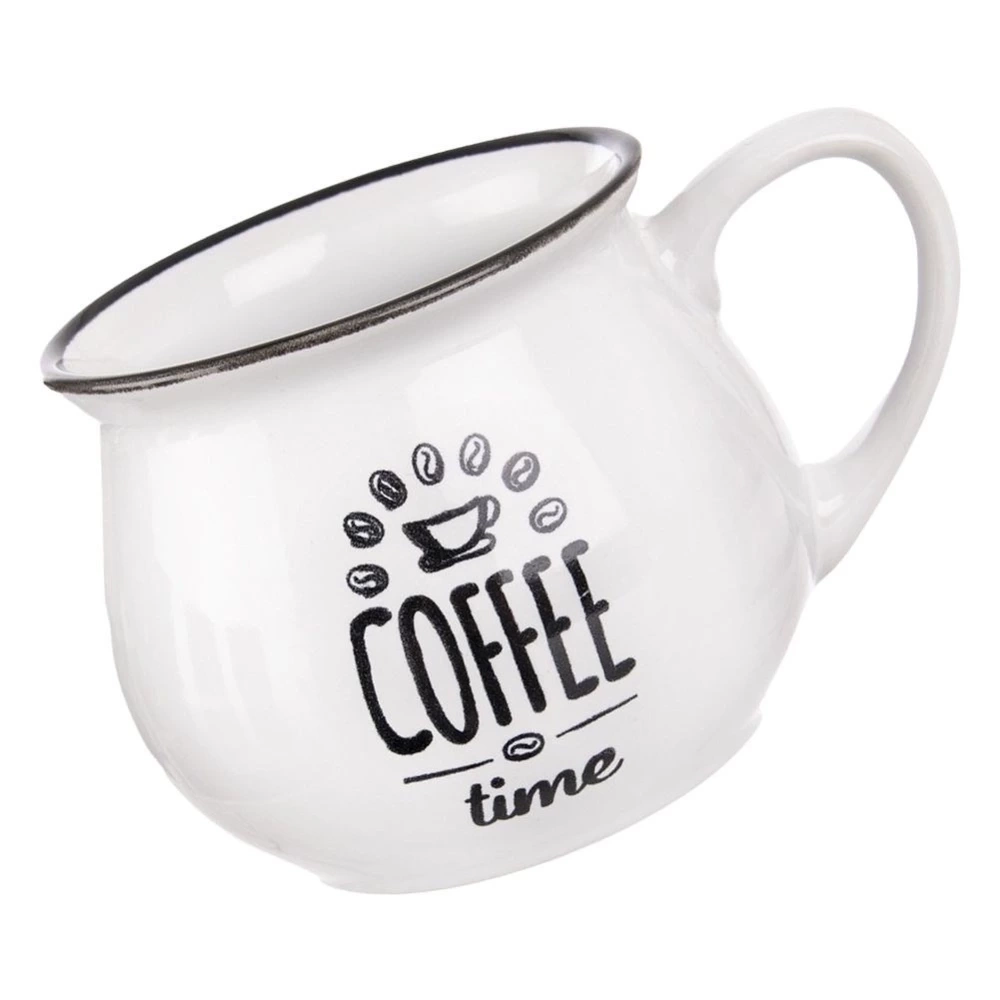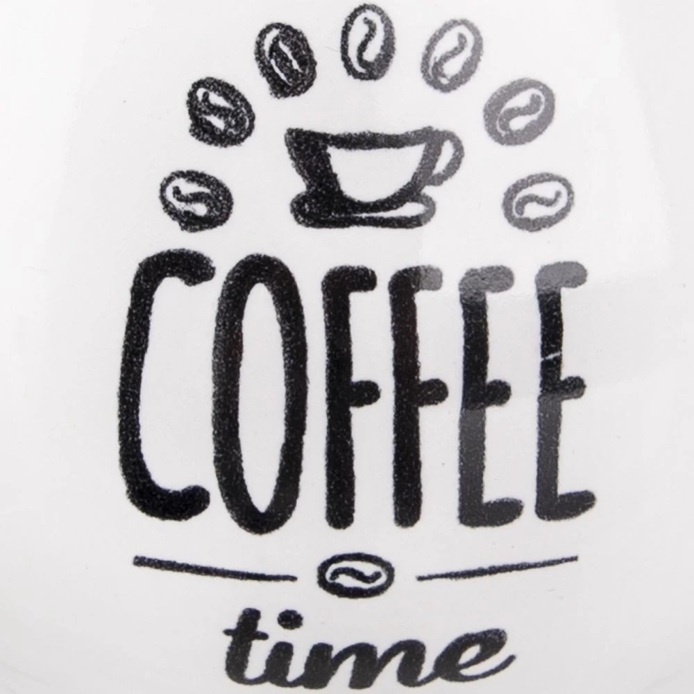 - CERAMICZNY - Wykonany z ceramiki w kolorze białym, posiada ciekawy dekor z napisem 'Coffee time'.