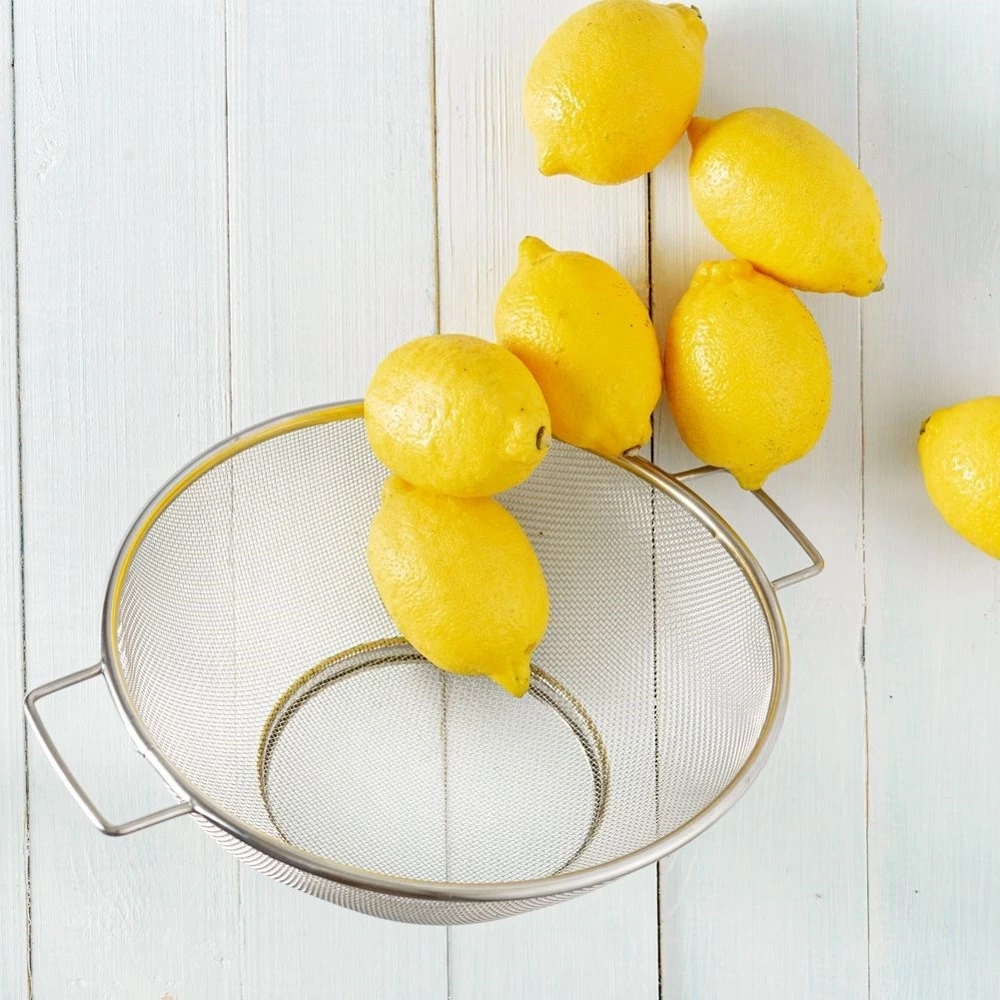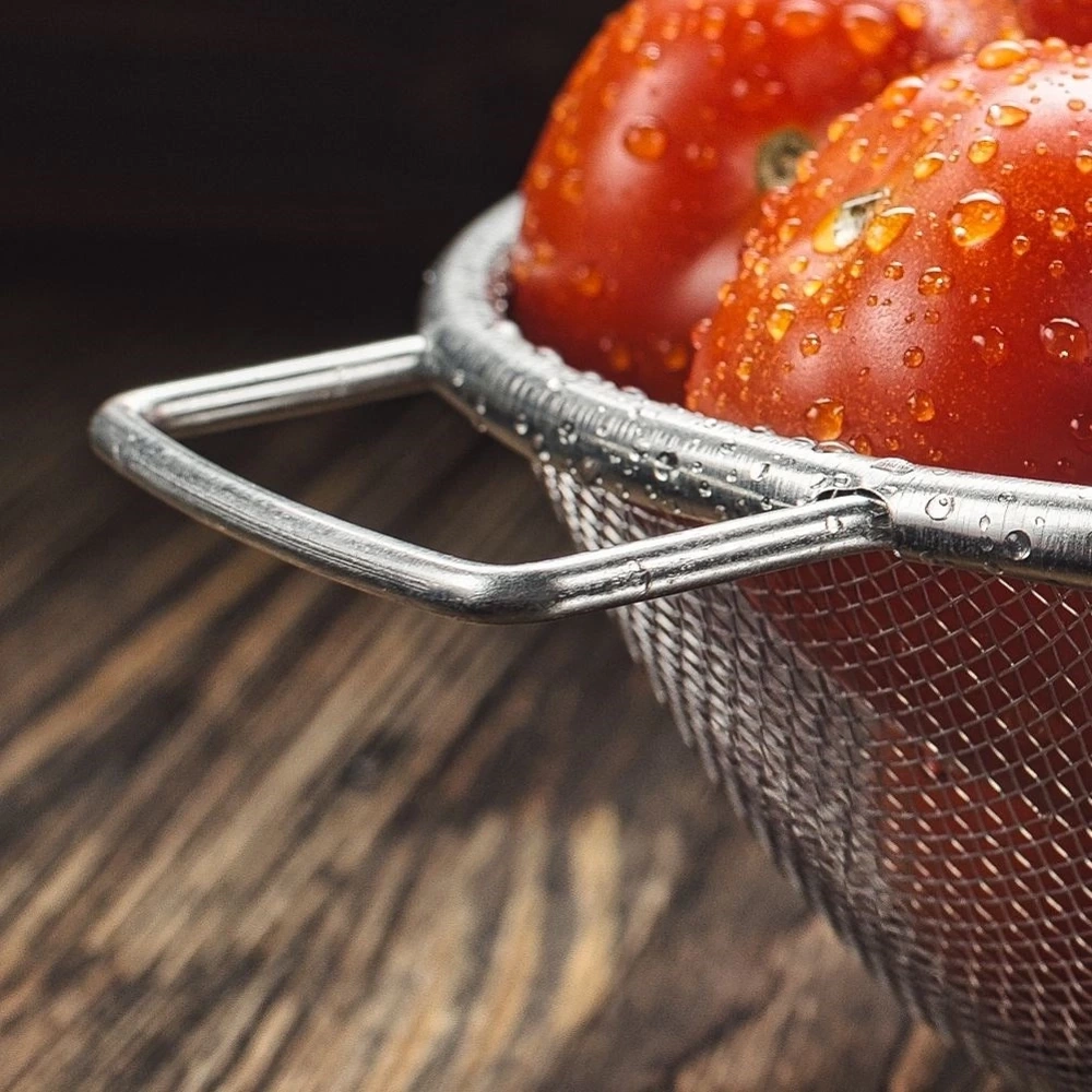 - Uniwersalne sitko kuchenne w formie miski. Wykonane ze stali nierdzewnej. Posiada dwa uchwyty, które zapewnią wygodne użytkowanie. Sprawdzi się do odcedzania, mycia i płukania produktów.