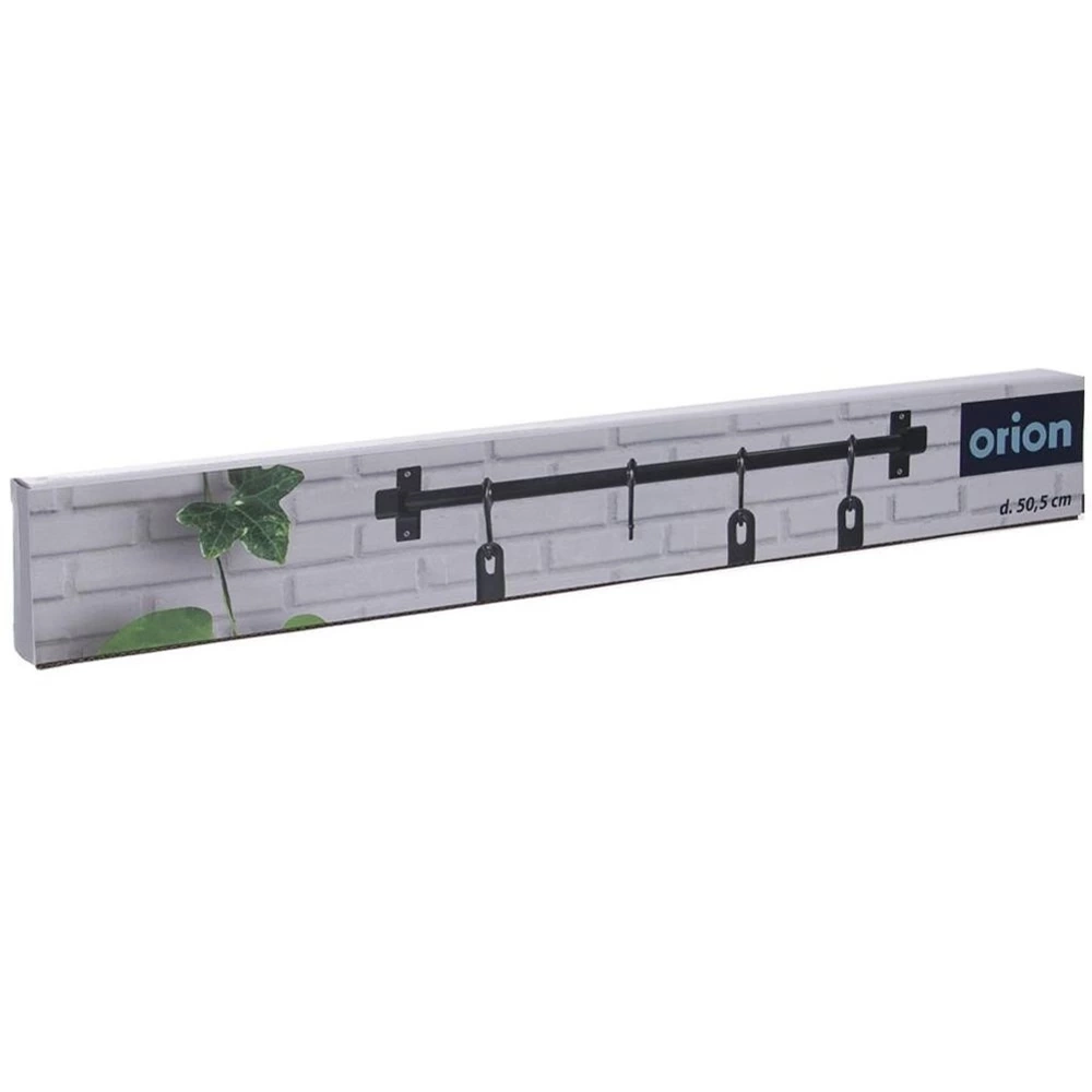 Wieszak na przybory kuchenne w formie drążka wraz z czterema haczykami. Niezwykle solidny, przydatny w każdej kuchni. Z jego pomocą w piękny sposób wyeksponujesz przybory kuchenne. Oryginalny produkt czeskiej marki Orion. Wyprodukowano zgodnie z europejskimi standardami.