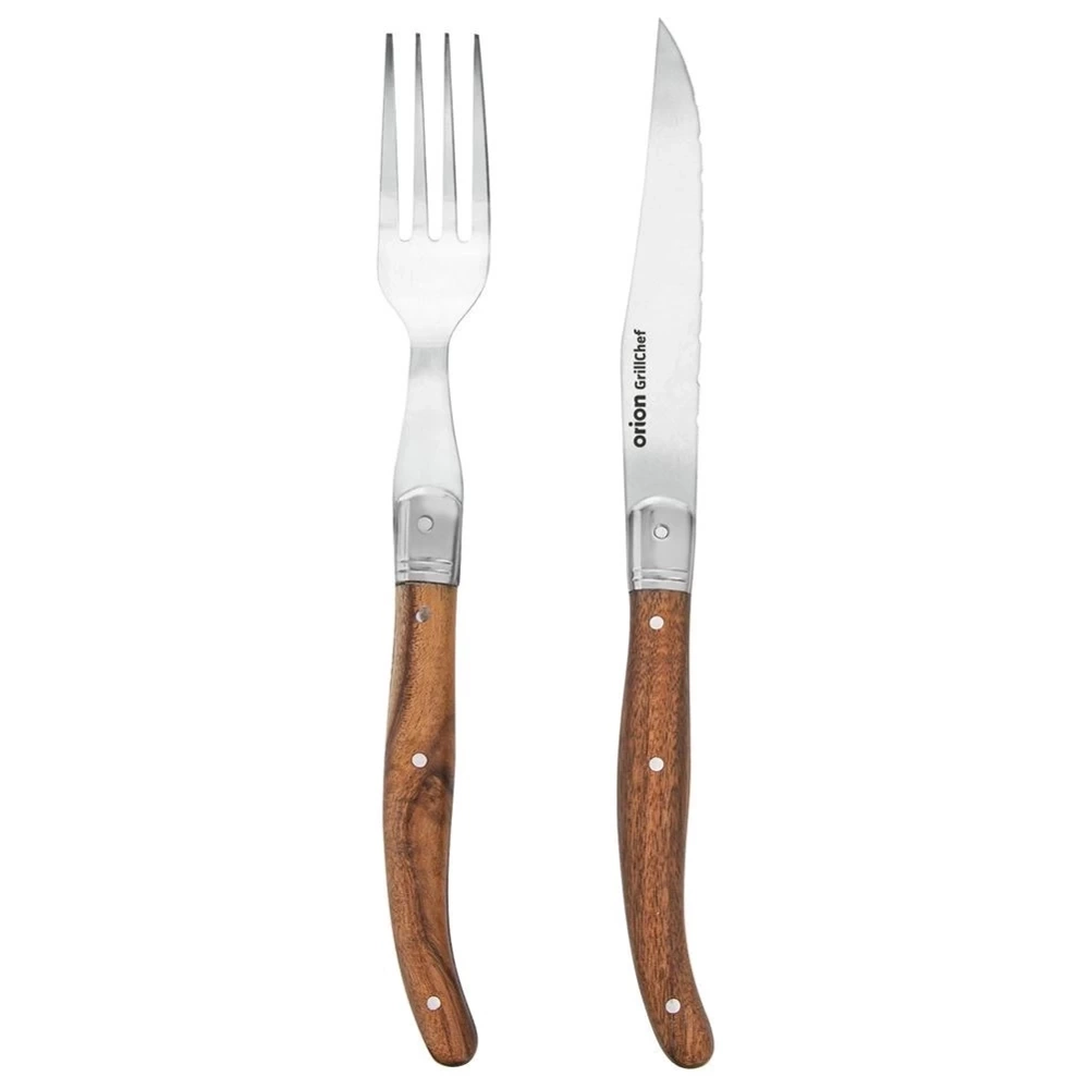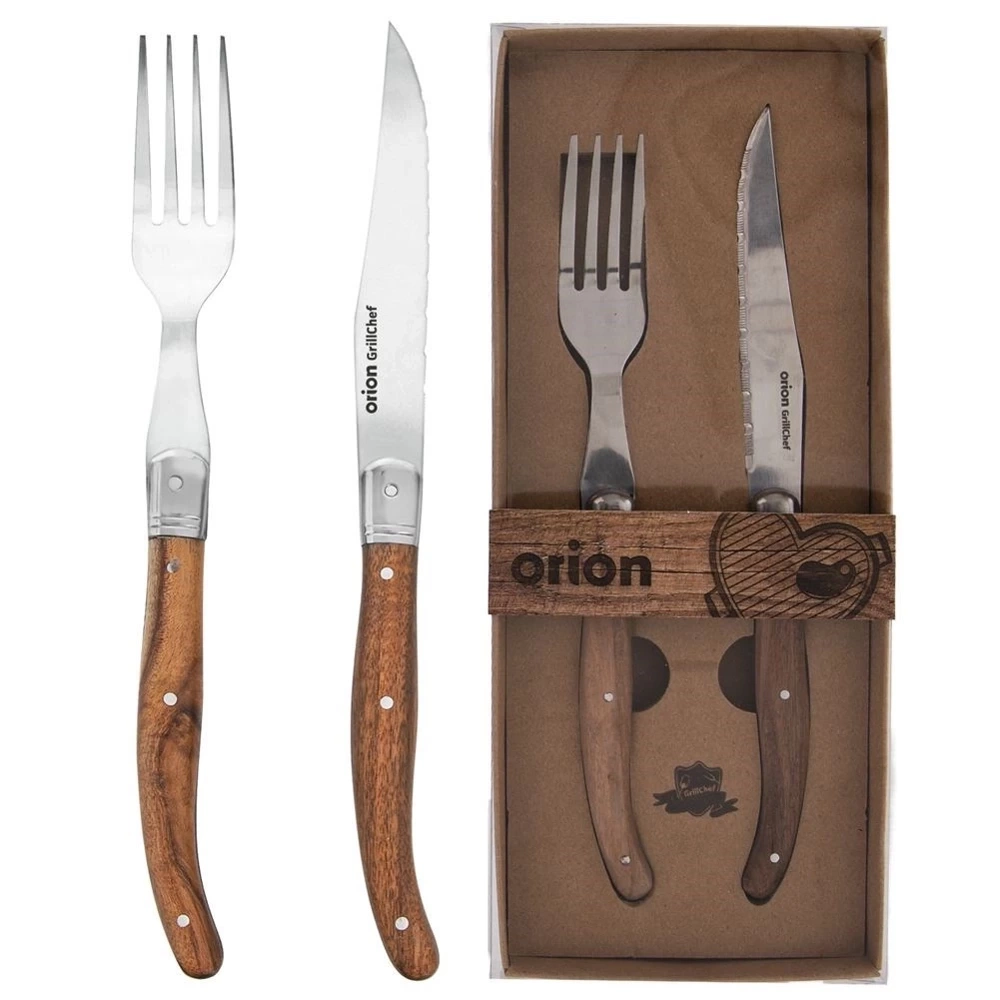 Komplet sztućców do steków i burgerów w prezentowym opakowaniu. Niezwykle wygodne w użytkowaniu, dzięki odpowiednio wyprofilowanej rączce. Wykorzystamy je zarówno w domu, jak i podczas grillowania. W celu odpowiedniej konserwacji nie zaleca się mycia w zmywarce do naczyń. Oryginalny produkt czeskiej marki Orion. Wyprodukowano zgodnie z europejskimi standardami.
