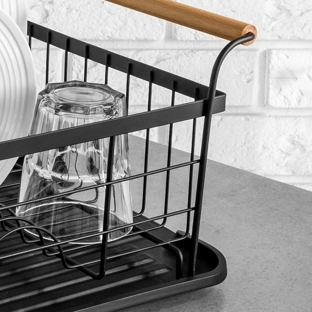 - WYGODNA - Wyposażona w dwa uchwyty wykonane z drewna, które ułatwiają przenoszenie a zarazem są ciekawym dodatkiem podkreślającym wyjątkowy wygląd suszarki do naczyń.