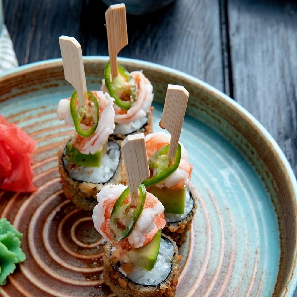 - BAMBUSOWE - Wykonane z naturalnego drewna bambusowego. Wykałaczki mają formę szpikulców. Niezwykle praktyczne i wytrzymałe.