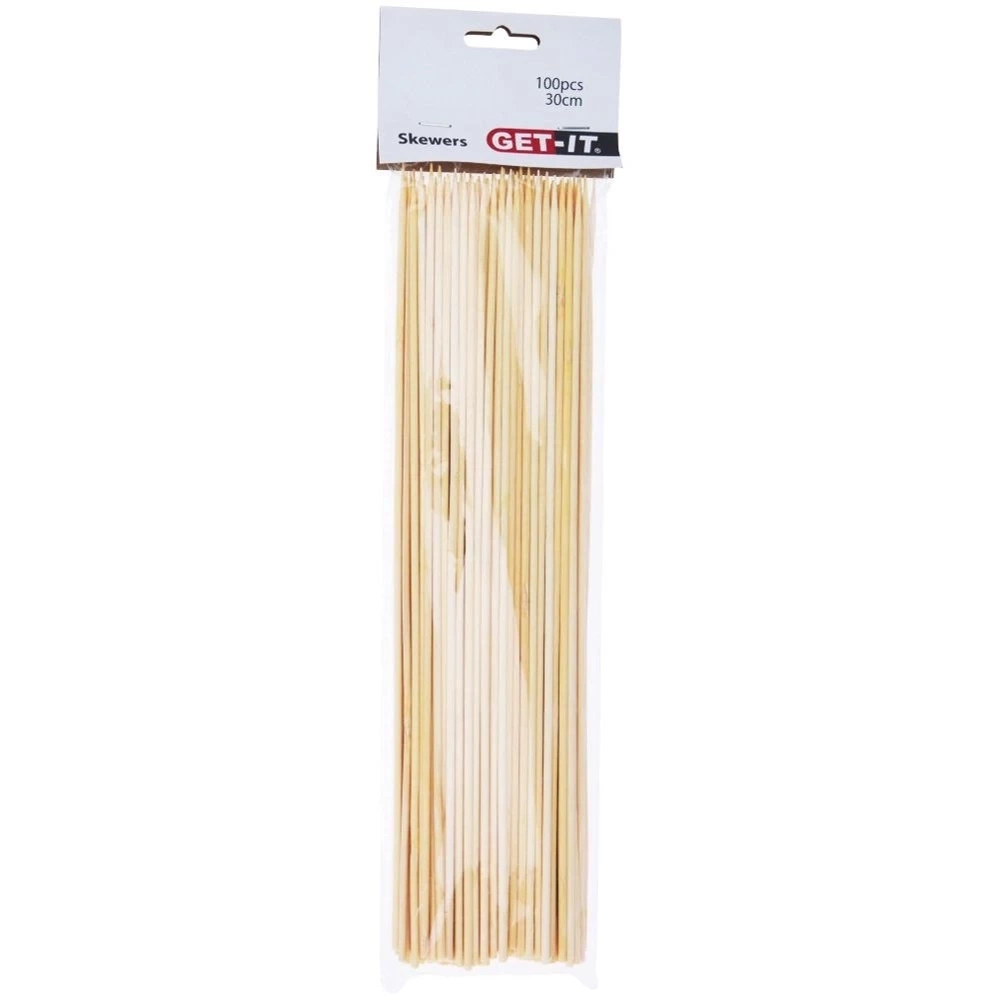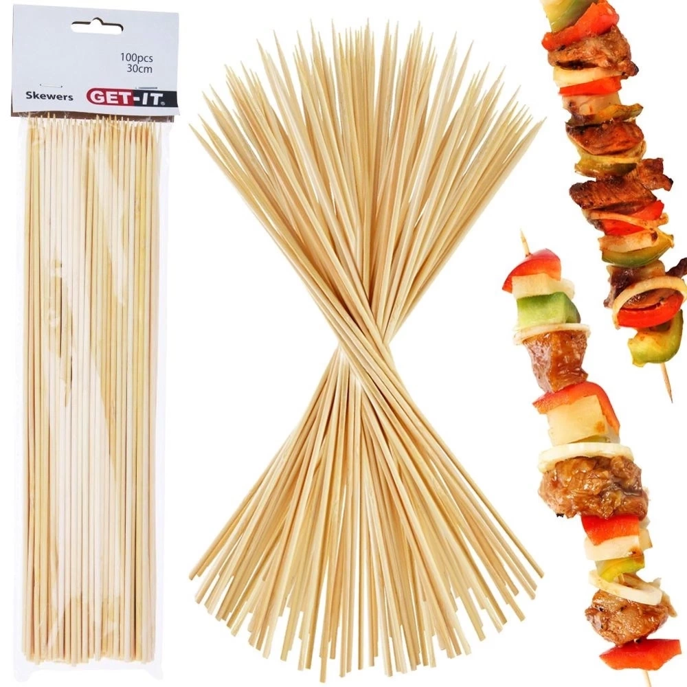 - Komplet drewnianych szpikulców do przygotowywania grillowanych szaszłyków. W zestawie 100 sztuk o długości 30 cm każda. Pomieszczą duże ilości składników.