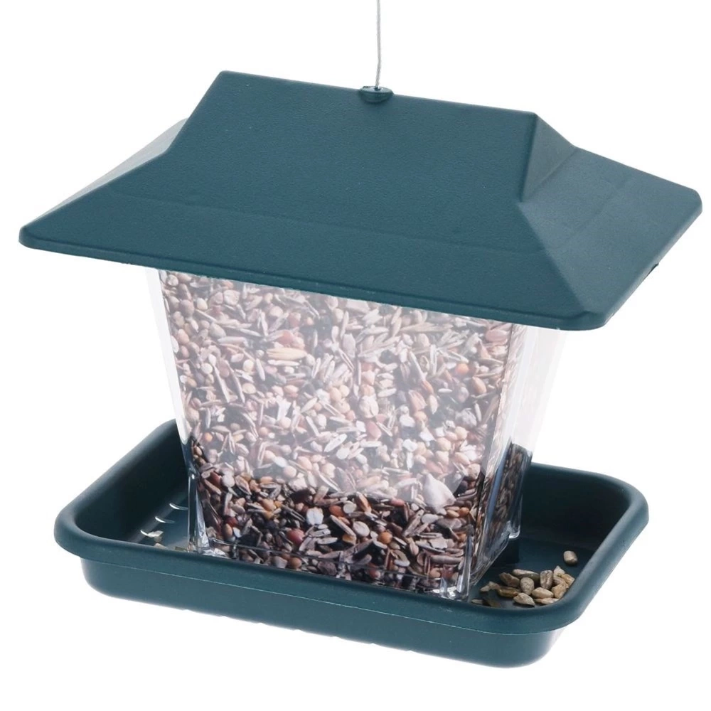 - PRAKTYCZNY - Karmnik dla ptaków na ziarno lub karmę. Karmnik ma wymiary 19,5 x 14,5 x 17,5 cm.