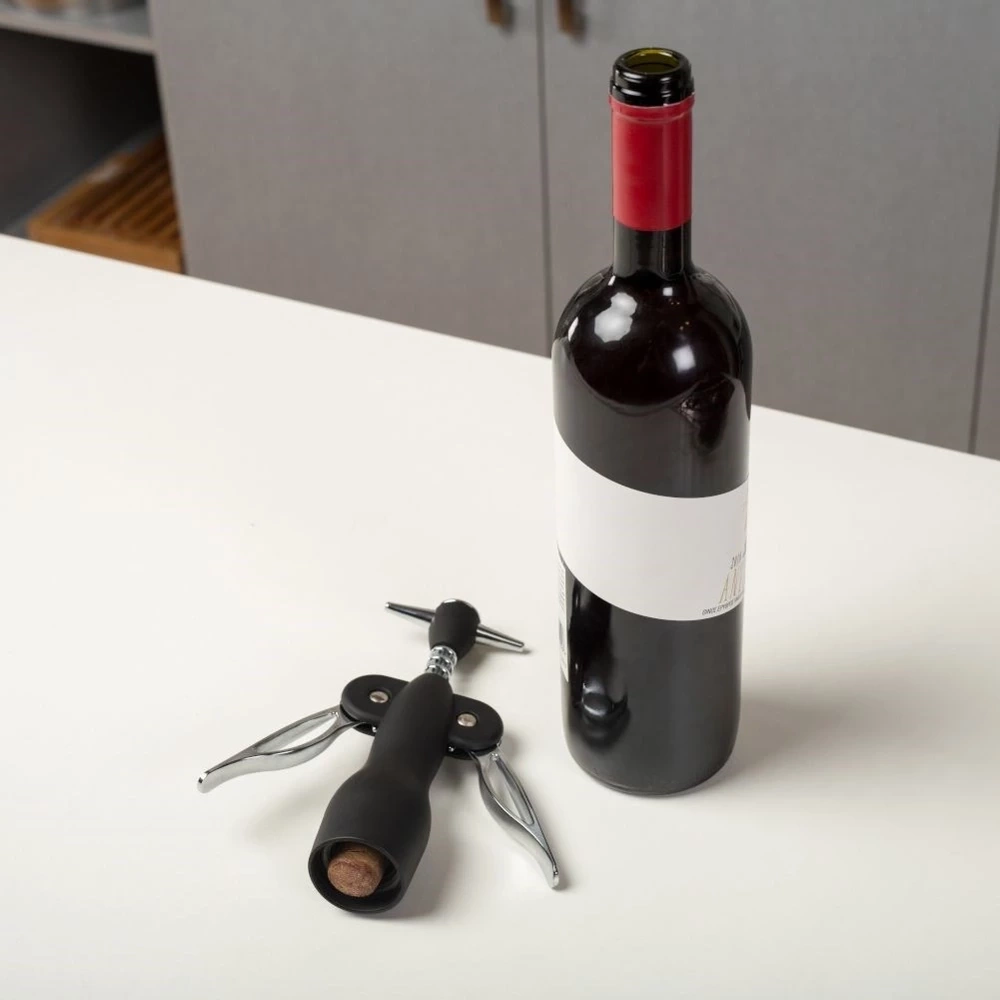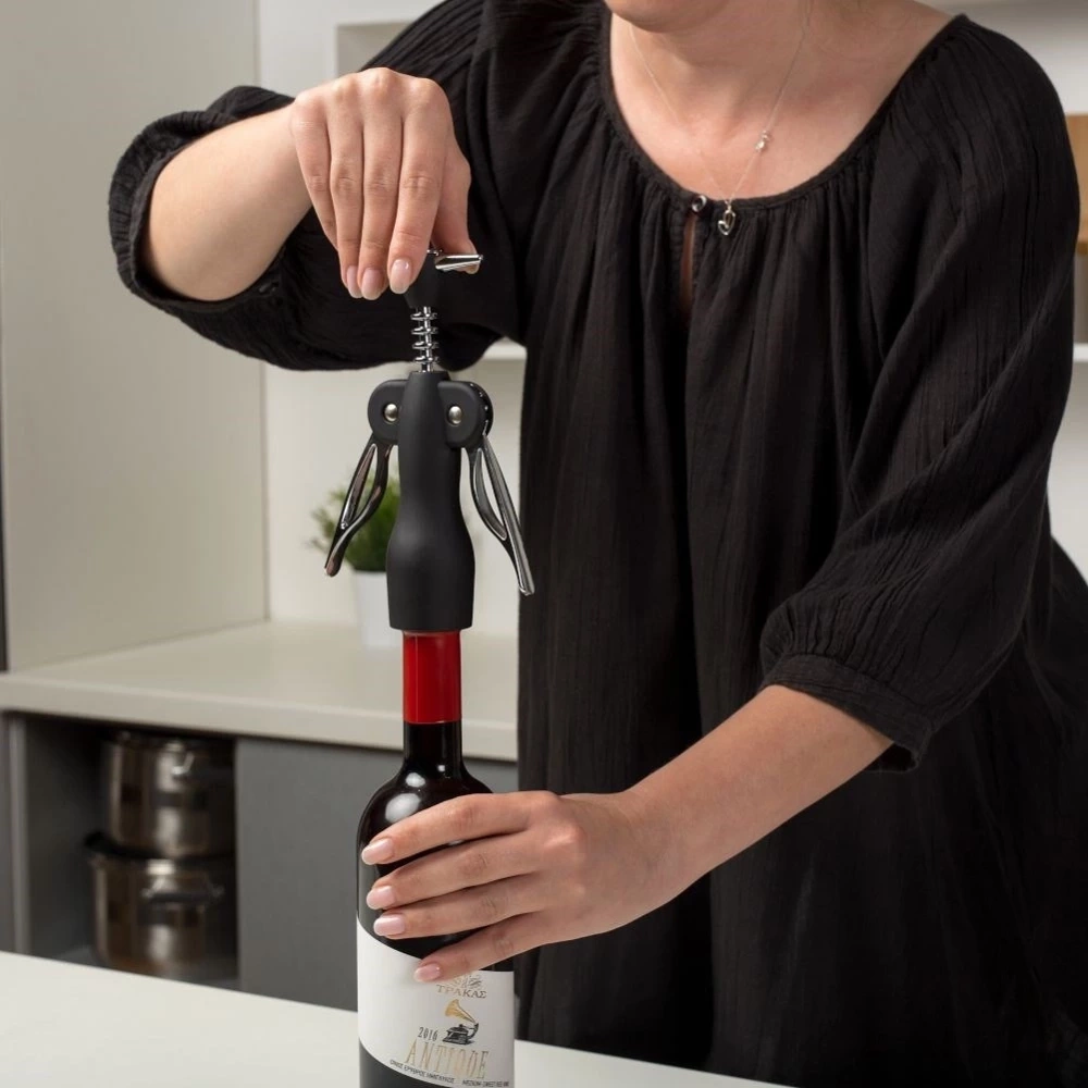 - Korkociąg pomoże w otwarciu butelki z ulubionym winem. Wykonany ze stali nierdzewnej i tworzywa w matowym, czarnym kolorze. Doskonale nadaje się na prezent.